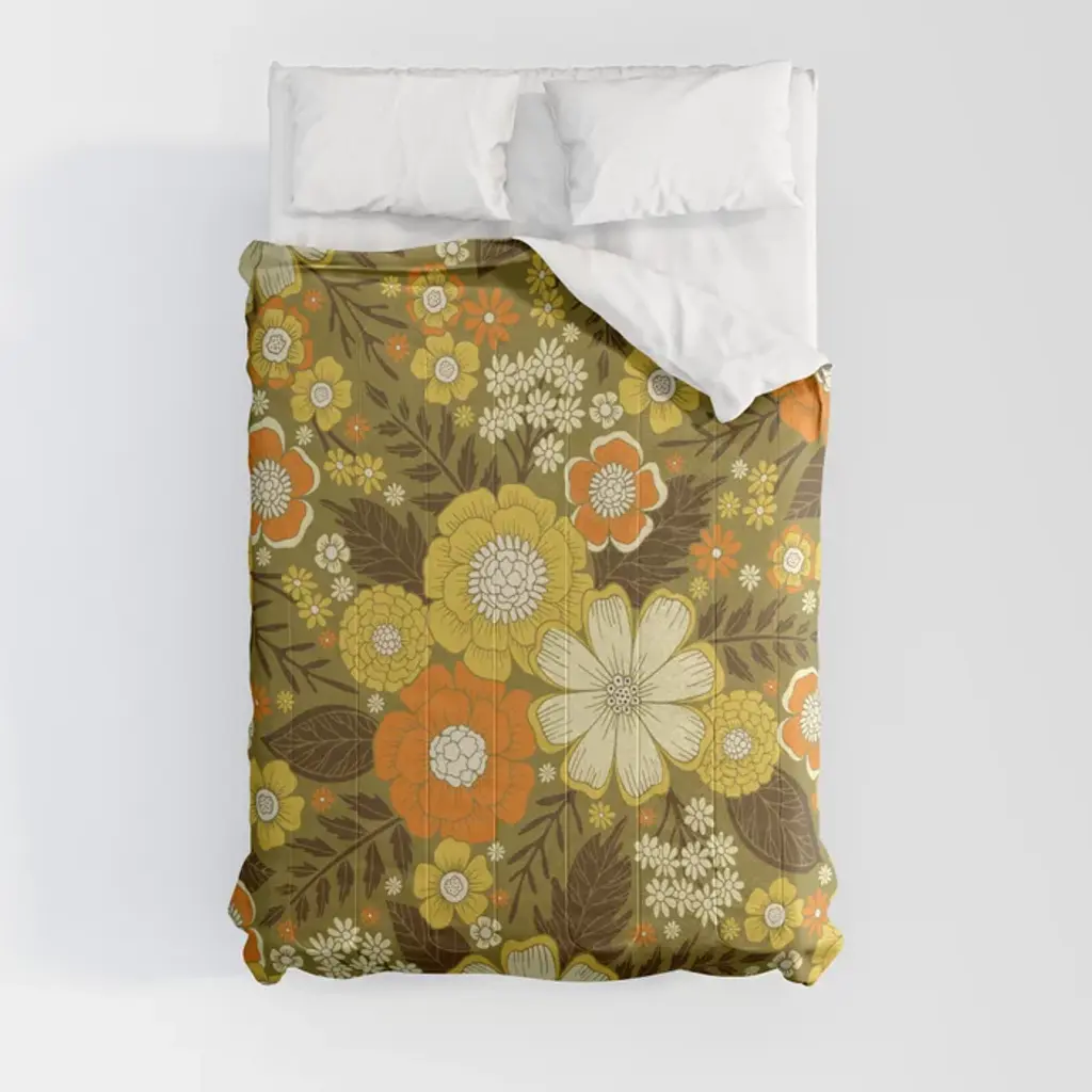 70s Flowers - 70s, Retro, Spring, Floral, Florals, Floral Pattern, Retro Flowers, Boho, Hippie, Earthy, Muted Duvet Cover