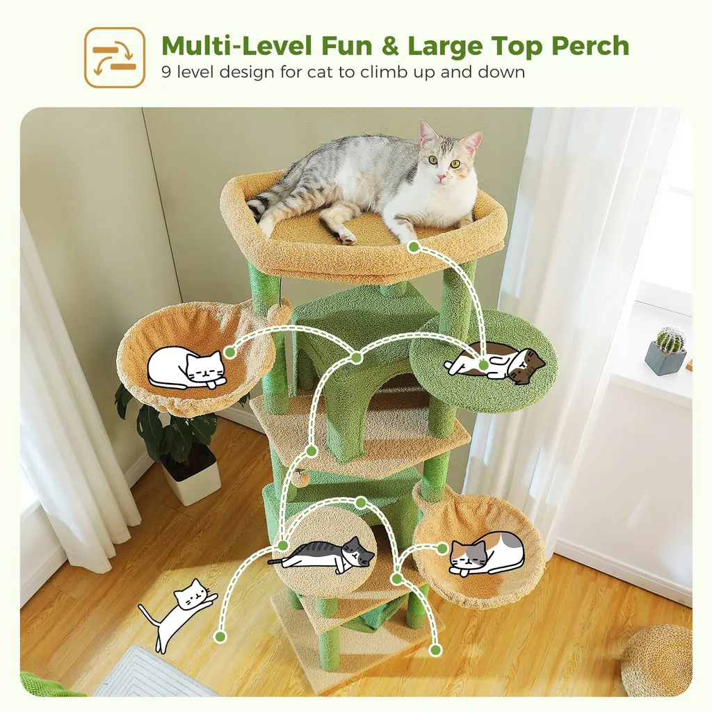 Transform your living space into a cat haven with this Large Cat Tree - a 4-level cat tower that combines functionality, comfort, and style. Designed with your feline's needs in mind, this cat tree offers multiple levels for climbing, playing, and resting. It includes one large cushioned perch and two spacious hammocks, ensuring your cats have plenty of comfy spots to relax. Multi-Level Design for Maximum Play & Rest: Comfortable Resting Areas: Scratching Paradise with 5 Scratch Posts: Cozy Apartments for Privacy: Sturdy & Durable Construction: