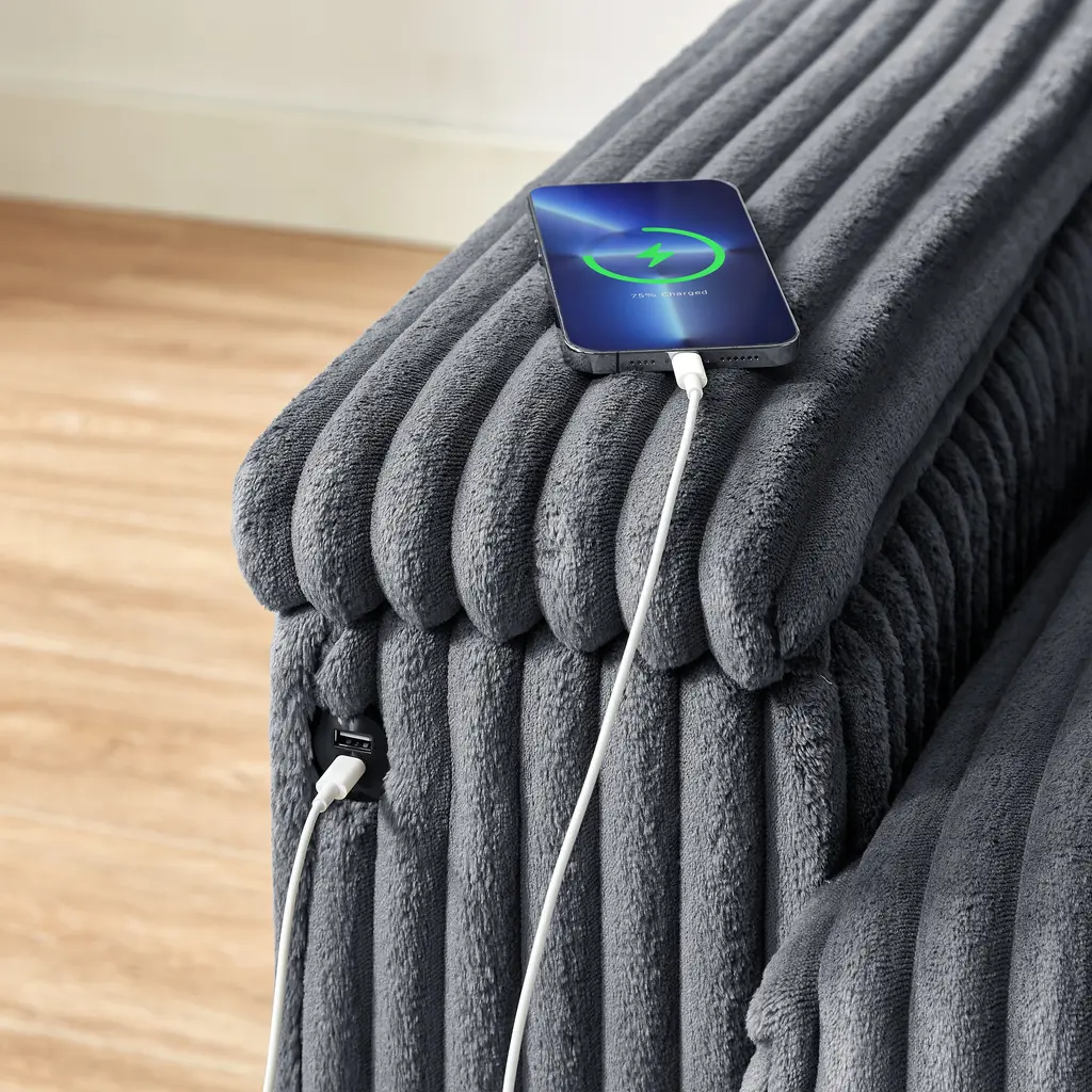 [Soft Corduroy]:Upholstered with soft corduroy in a neutral hue, this set will provide an inviting and cozy feel to your home. This sofa set uses high-quality corduroy fabric, which is soft and comfortable to the touch. The classic and fashionable design will add elegance and taste to your living room decor. [Spacious Storage & USB port]: 2 Armrest storage space sized 26.8"L x 15.8"W x 5.91"D, perfect for tucking away pillows and blankets, 1 built-in USB charging port, this multi-functional sofa features two side pockets for easy organization of magazines and remotes [Strong & Durable]:The pedal design of this sofa set provides good support and stability, allowing you to relax and have a more comfortable experience. The frame of the sofa is made of solid wood for added sturdiness and durability, making it for those who want to rest after a busy day. The high-resilience sponge cushioning reinforced with a spring package ensures that you will be supported and comfortable when seated, and the cushions will easily restore their shape