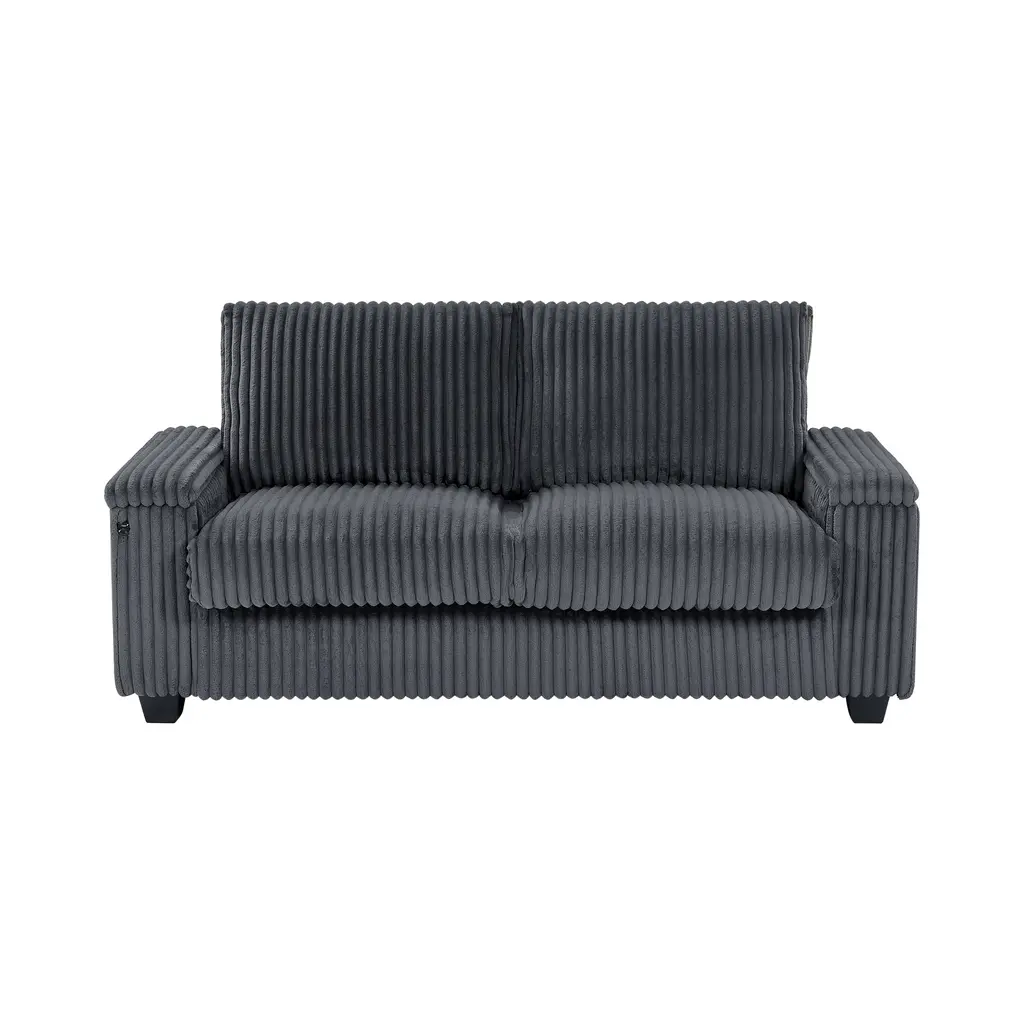 71 Inch Modern Corduroy Fabric Loveseat Sofa With Storage Armrest And Ups Ports - Grey