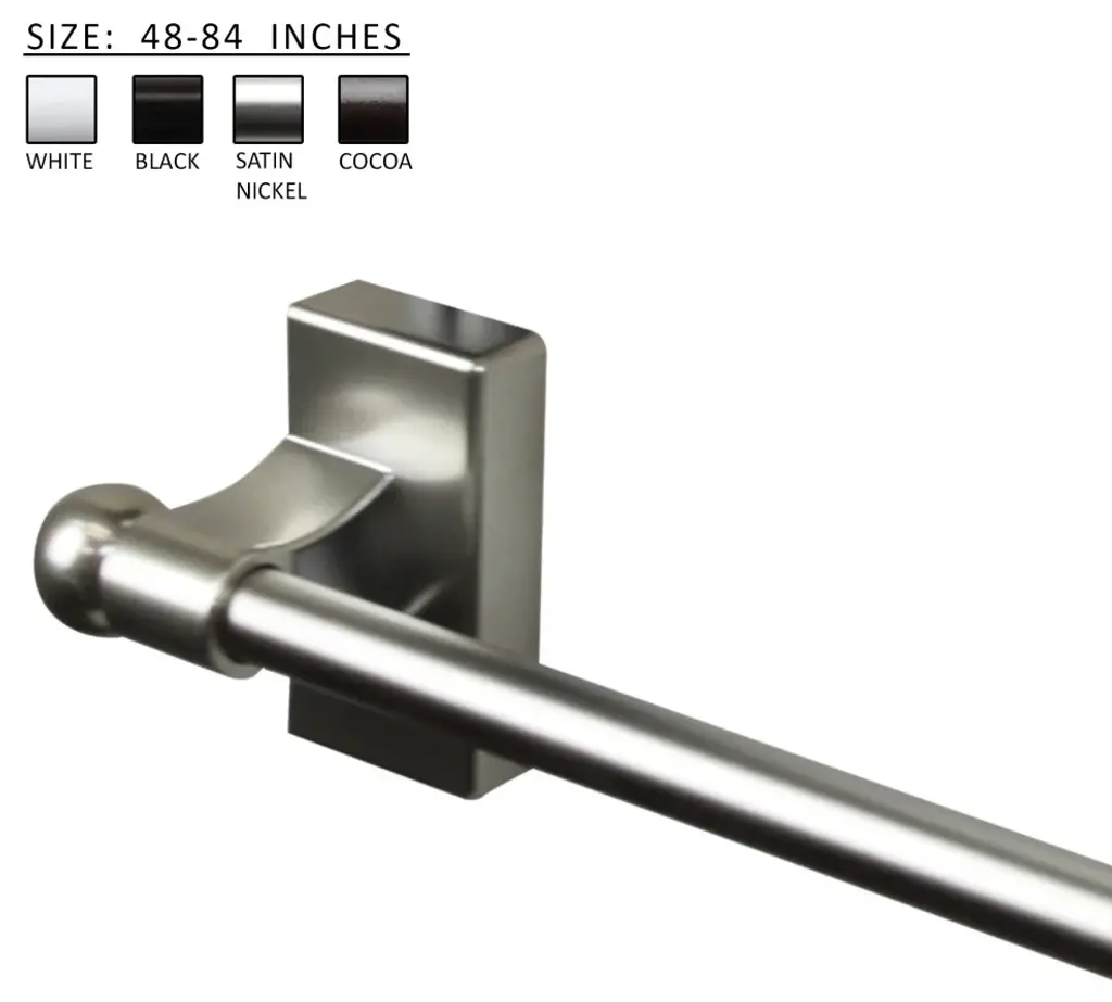 Central Design Products presents the perfect enhancement to your window treatment with high end quality Magnetic Rods.Designed to add a simple, yet modern touch. Adjustable to affix to a variety of steel surfaces with magnetic brackets. Stylish application for your everyday steel surfaces like refrdigerators, dishwashers, and many more. Includes 1 Curtain Rod of 7/16" diameter and 2 magnetic end brackets. Length: 48-84" Rod Projection: 1.625" Color: Satin Nickel Material: Steel Rod Designed for light weight use