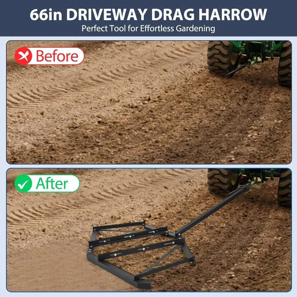 "72" Atv Drag Harrow, Driveway Grader & Land Leveler, Heavy Duty Tow Behind Rake For Gravel, Sand, Dirt, Works With Utv/tractor/mower