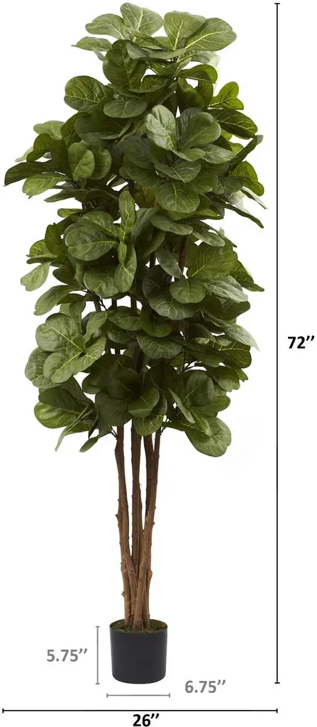 Fiddle-leaf fig trees can be temperamental, but this faux version is guaranteed to maintain its glossy green leaves and lush good looks with no effort on your part. An impressive 270 leaves have been attached to its multiple natural trunks for maximum realism. Standing six feet tall, it will command attention wherever you place it.