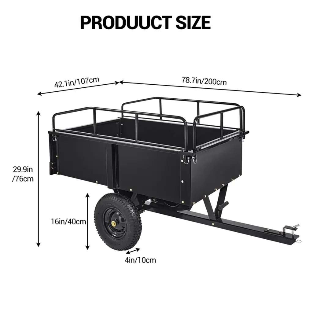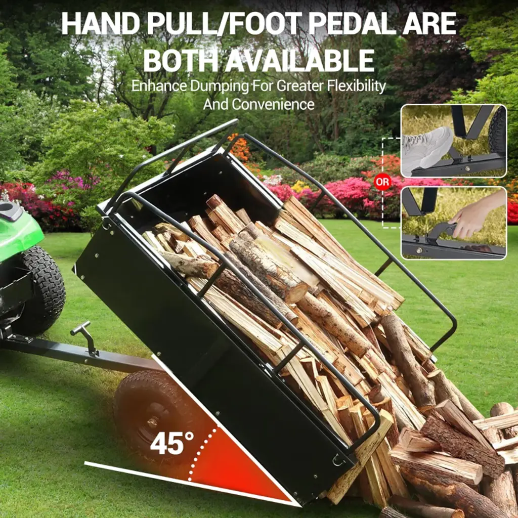 Introducing the Heavy-Duty Steel Dump Cart, your perfect partner for effortlessly managing any hauling job! Designed to endure the most challenging conditions, this sturdy cart boasts an impressive load capacity, making it ideal for moving materials such as soil, rocks, firewood, and yard debris. Its reinforced steel build and robust pneumatic tires enable smooth navigation over rough terrains. Plus, the convenient dumping feature allows for quick and easy unloading, whether you prefer the hand-pull or foot-step option.
