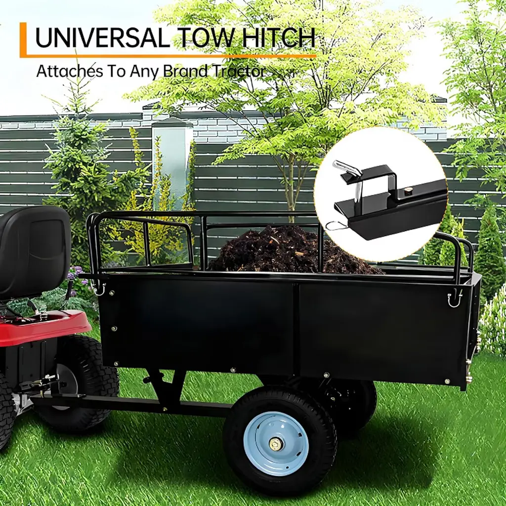 750LBS Heavy Duty ATV Trailer Tow Behind Steel Dump Cart, 15 Cu. Ft Garden Utility Trailer with Removable Sides & Rear Hitch for Riding Lawn Mower Tractor