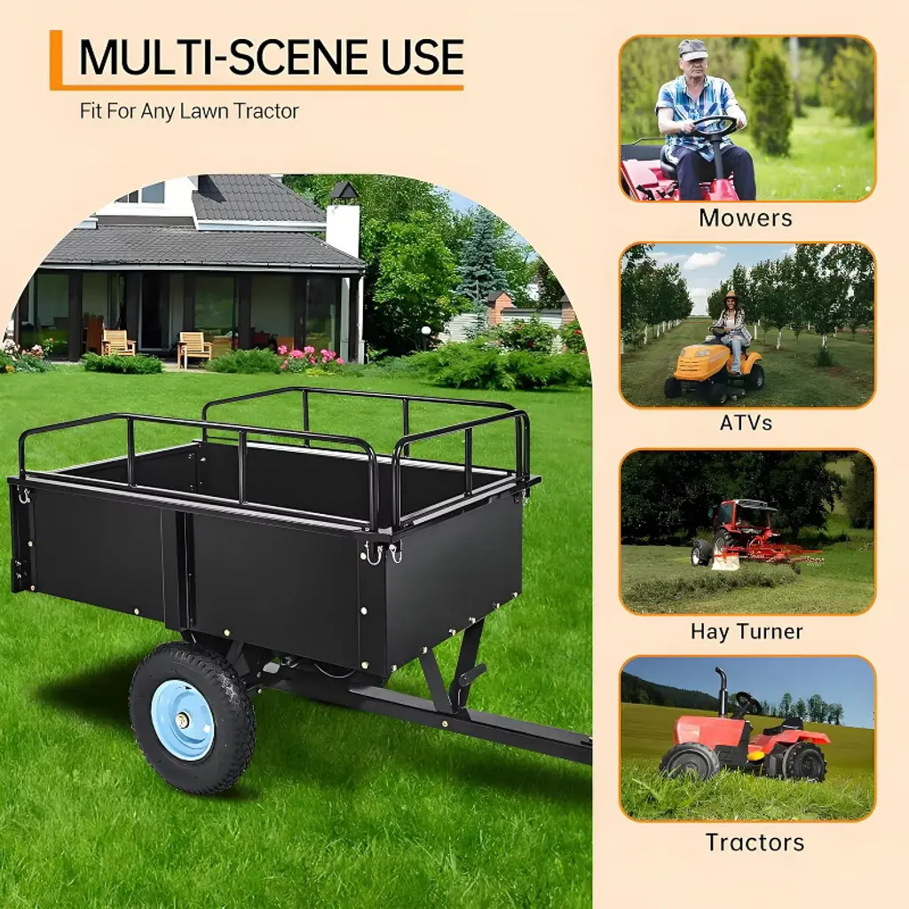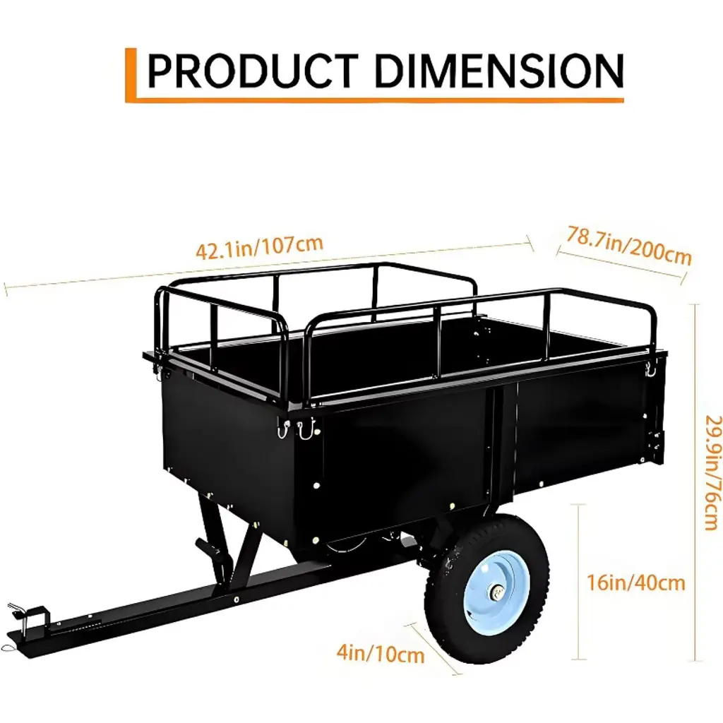 750lbs Heavy Duty Atv Trailer Tow Behind Steel Dump Cart, 15 Cu. Ft Garden Utility Trailer With Removable Sides & Rear Hitch