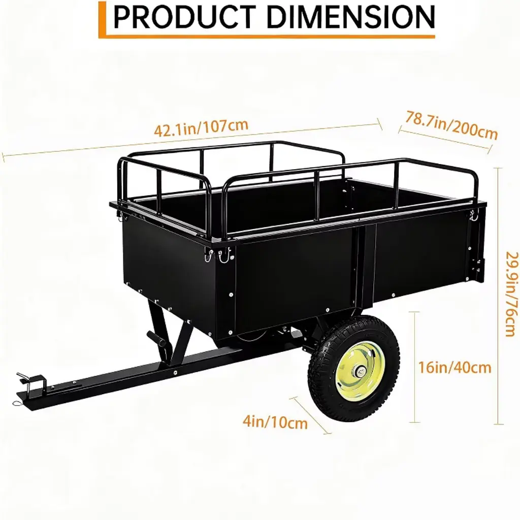 750lbs Heavy Duty Atv Trailer Tow Behind Steel Dump Cart, 15 Cu. Ft Garden Utility Trailer With Removable Sides & Rear Hitch
