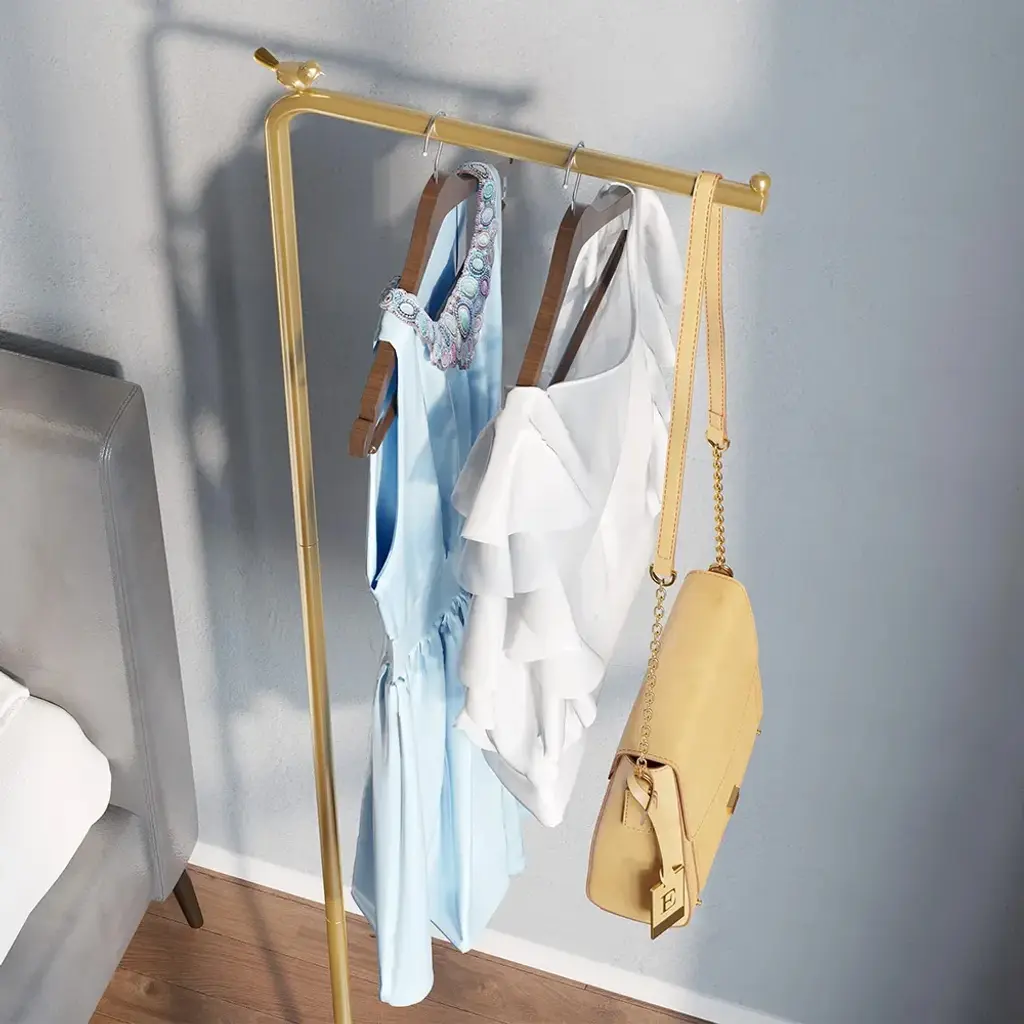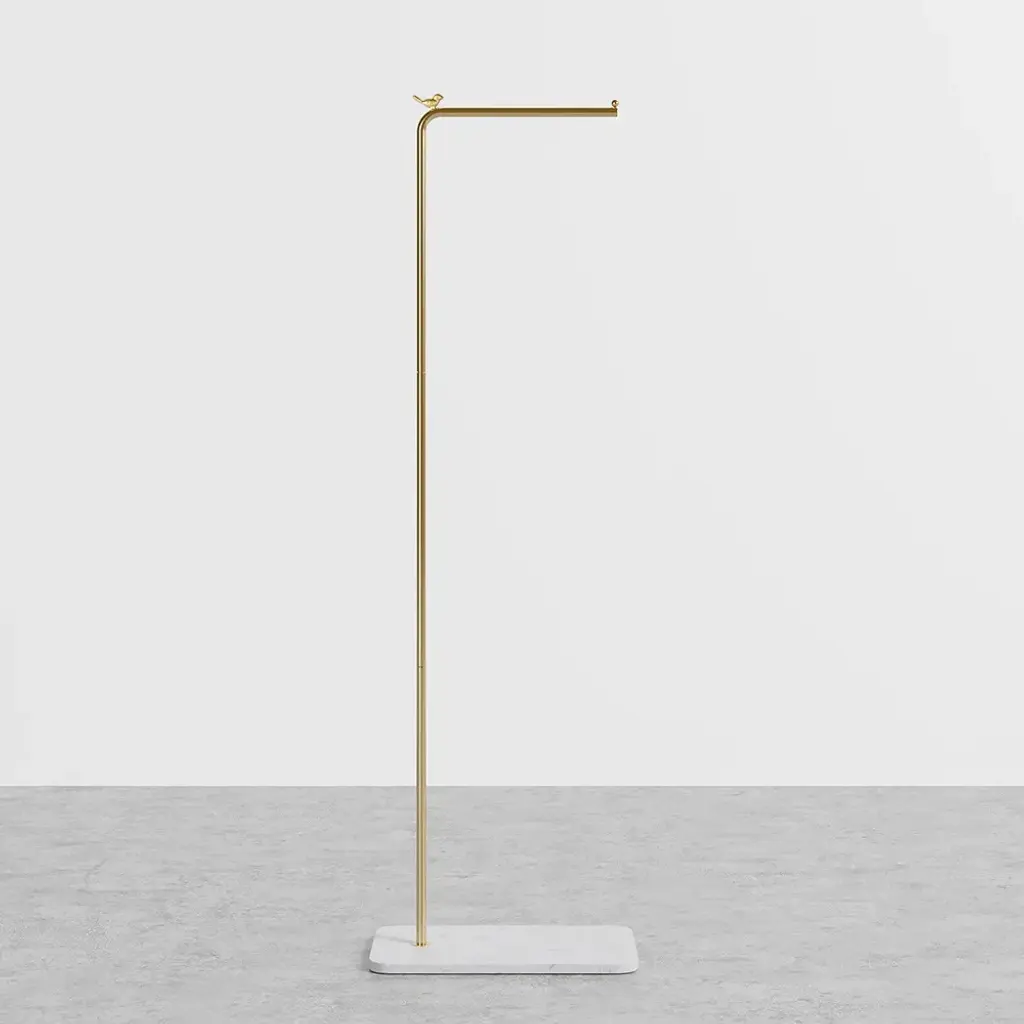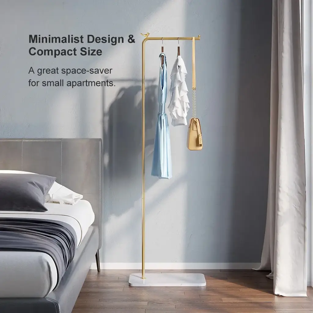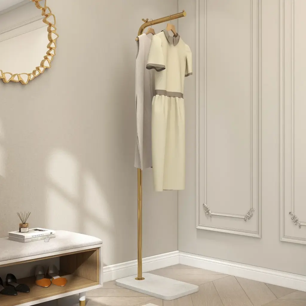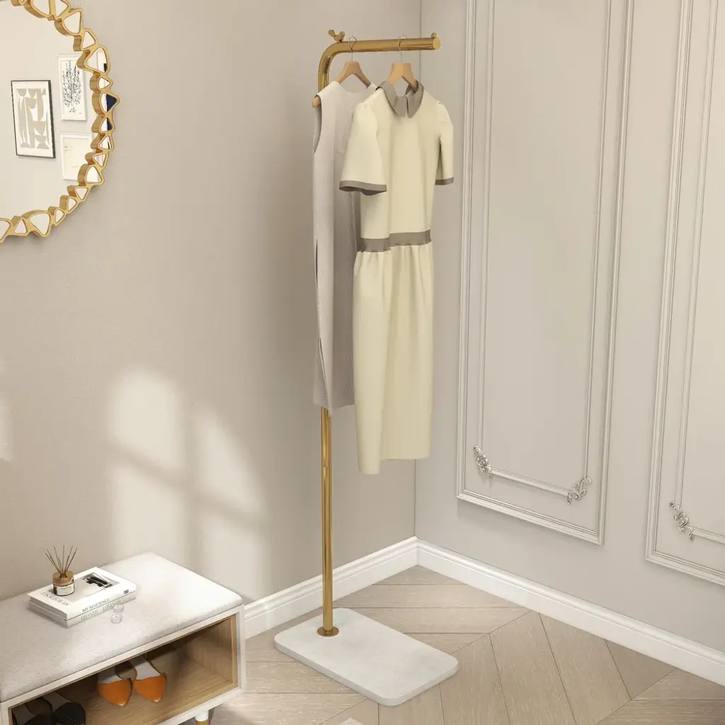 77" Modern L-Shaped Metal Cloth Rack With Marble Base
