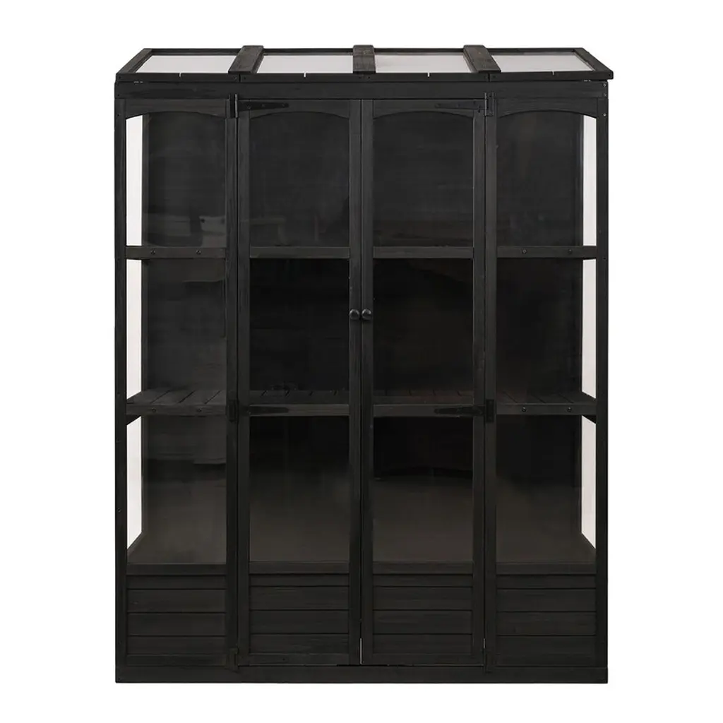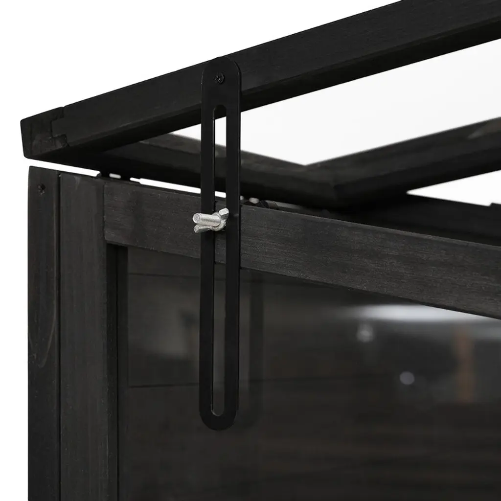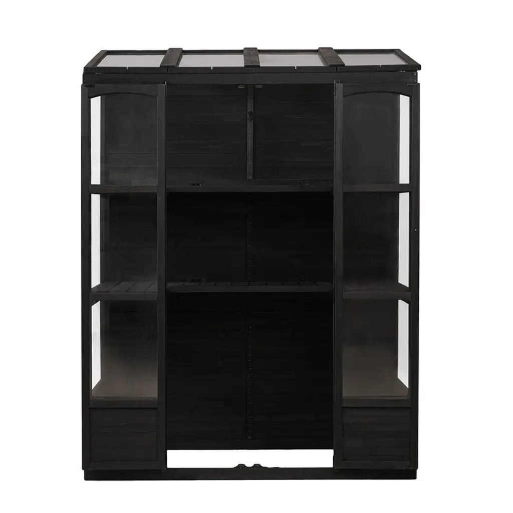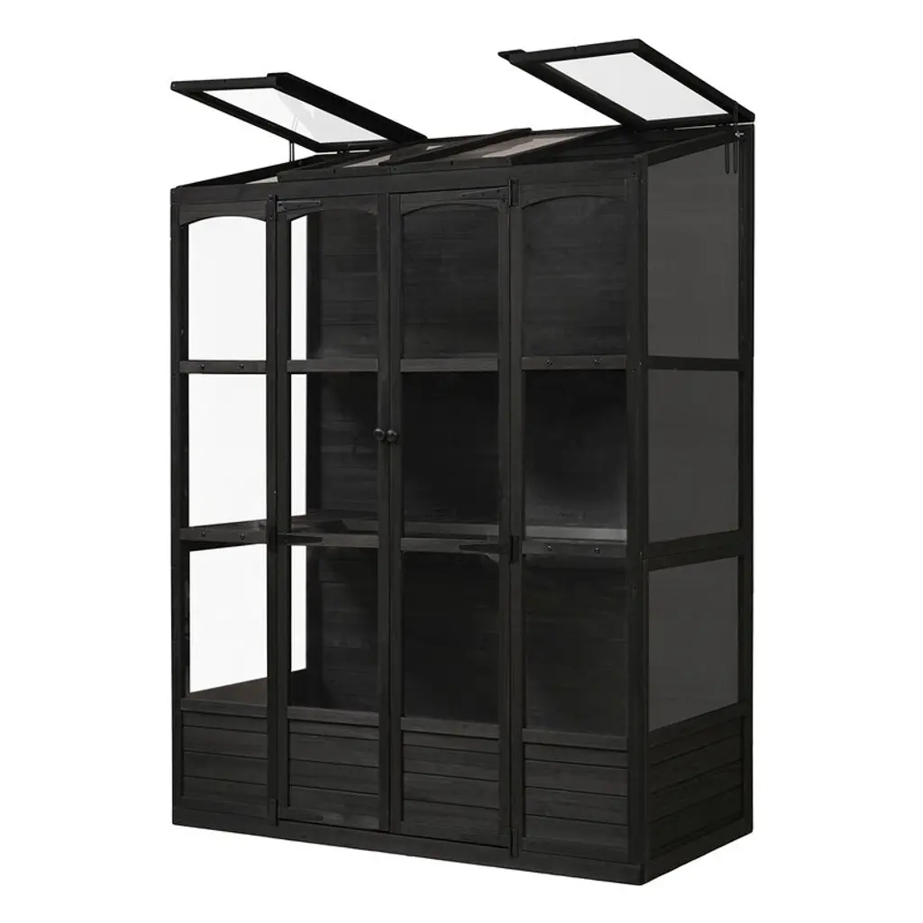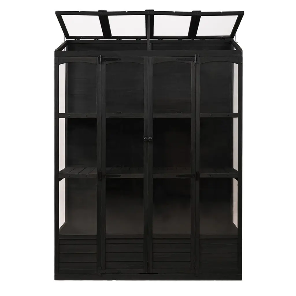 78-Inch Wooden Greenhouse Cold Frame With 4 Independent Skylights And 2 Folding Middle Shelves - Black