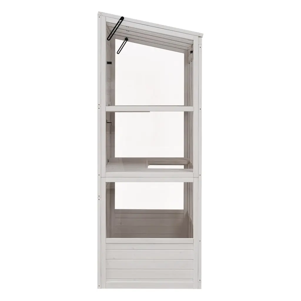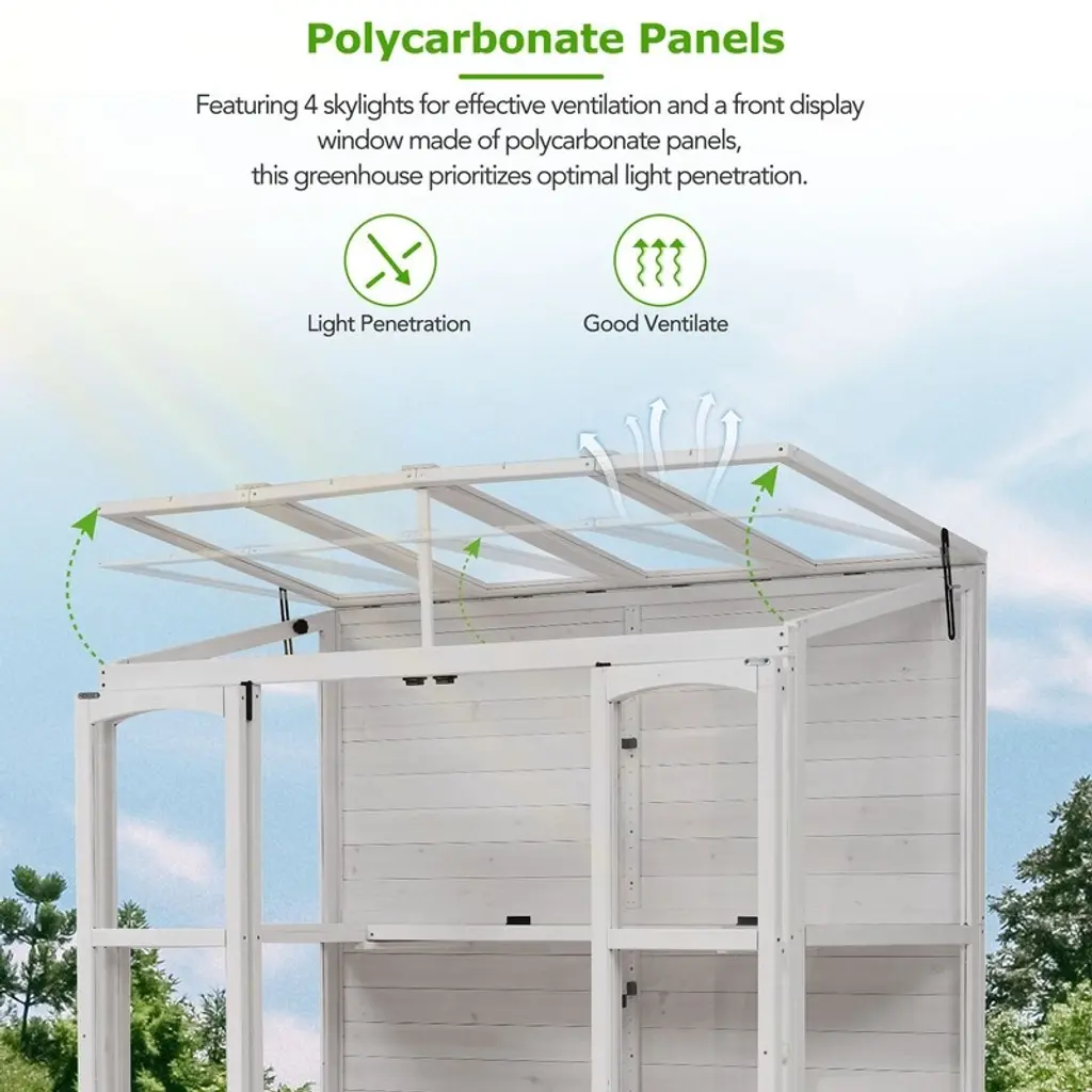78-Inch Wooden Greenhouse Cold Frame With 4 Independent Skylights And 2 Folding Middle Shelves - White