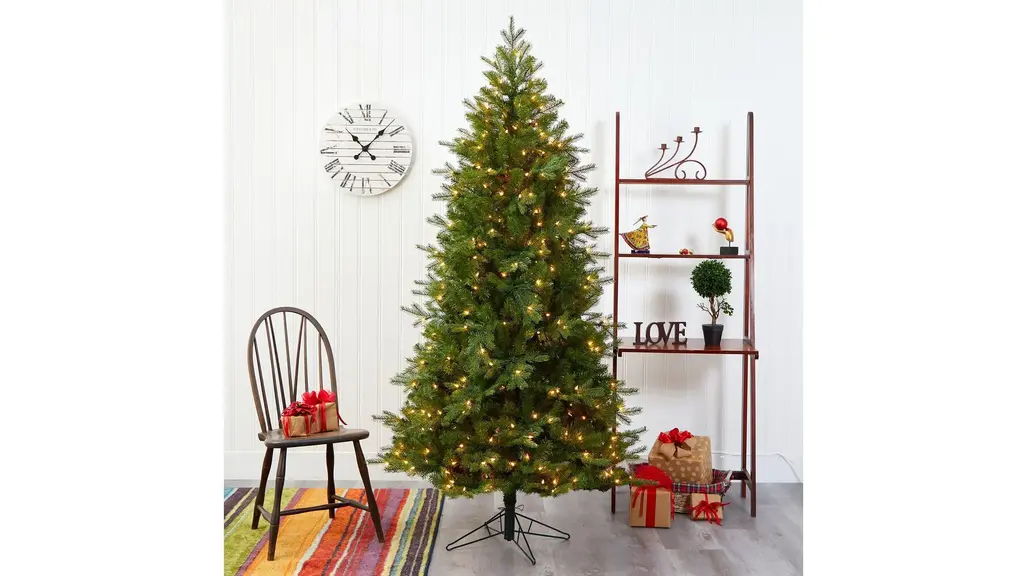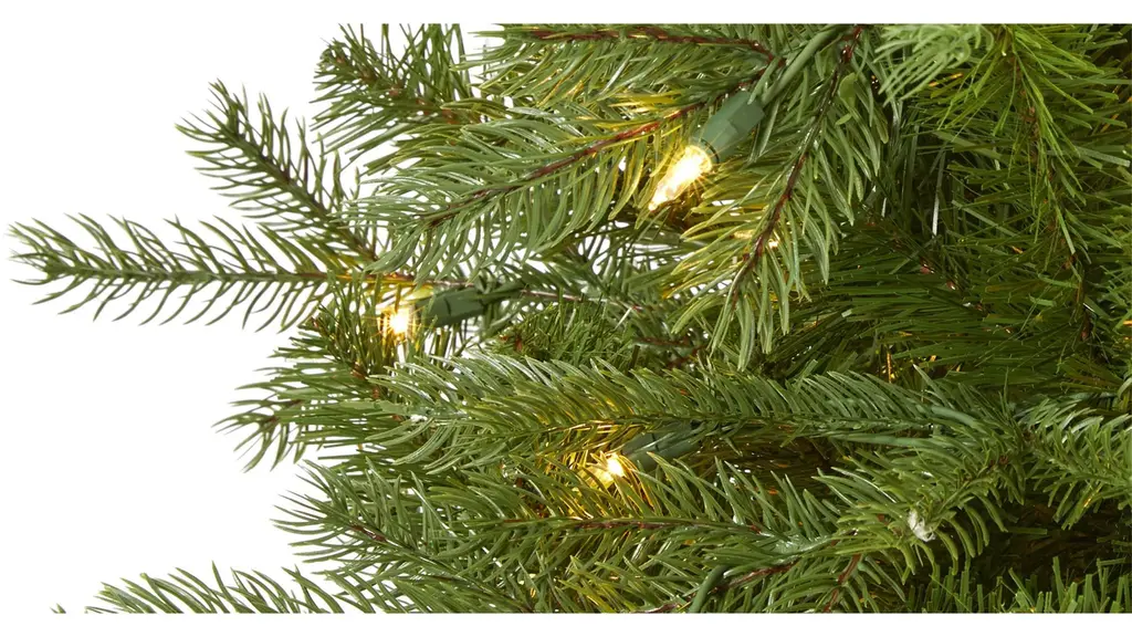 Create a traditional Christmas scene without the need for upkeep with the help of this easy and effortless artificial Christmas tree! Completely maintenance-free, this realistic looking fake Christmas tree boasts tiers of evergreen foliage made up of 843 easy-to-bend branch tips for showcasing your favorite holiday ornaments. Arriving pre-strung with 450 warm white lights to eliminate tangles and carefully stabilized on a metal stand, this handsome 7' tall artificial Christmas tree will not only make decorating a breeze but ensure your home is always holiday-dressed for years to come.