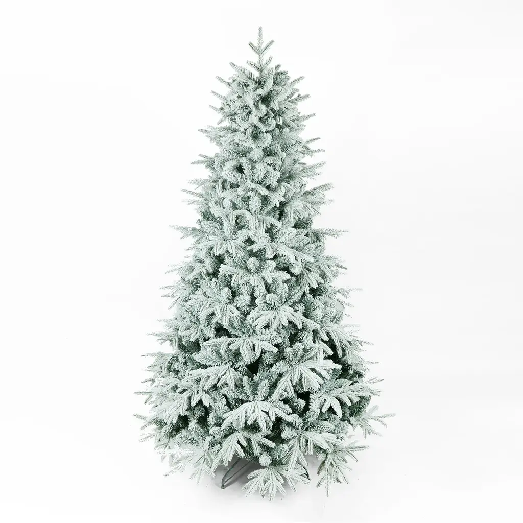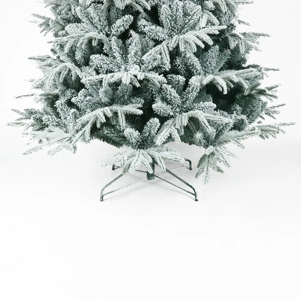 The Artificial Flocked Christmas tree with 1100 snow dusted tips creating a strong festive atmosphere. And for 55.12 inch diameter make this tree looks a little fat and very bushy ,however as it is hinged types ,each branch can lower into their own position quickly,so it is easy to fluff out leaving more time for holiday cheer. .What's more,the material of this spruce is fire-resistant and non-allergenic you can place it wherever you like.By the way ,as we use metal stand instead of cheap plastic ones, the white can serve you for a long time.