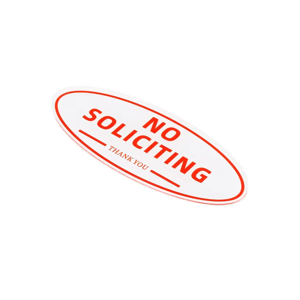 7"x3" No Soliciting Sign Adhesive Oval Door Sticker Wall Sign White - White, Red - 1 Pack