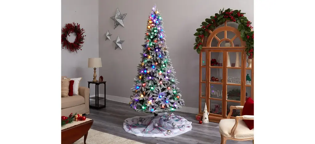 8.5' Pre-Lit Flocked British Columbia Mountain Fir Artificial Tree