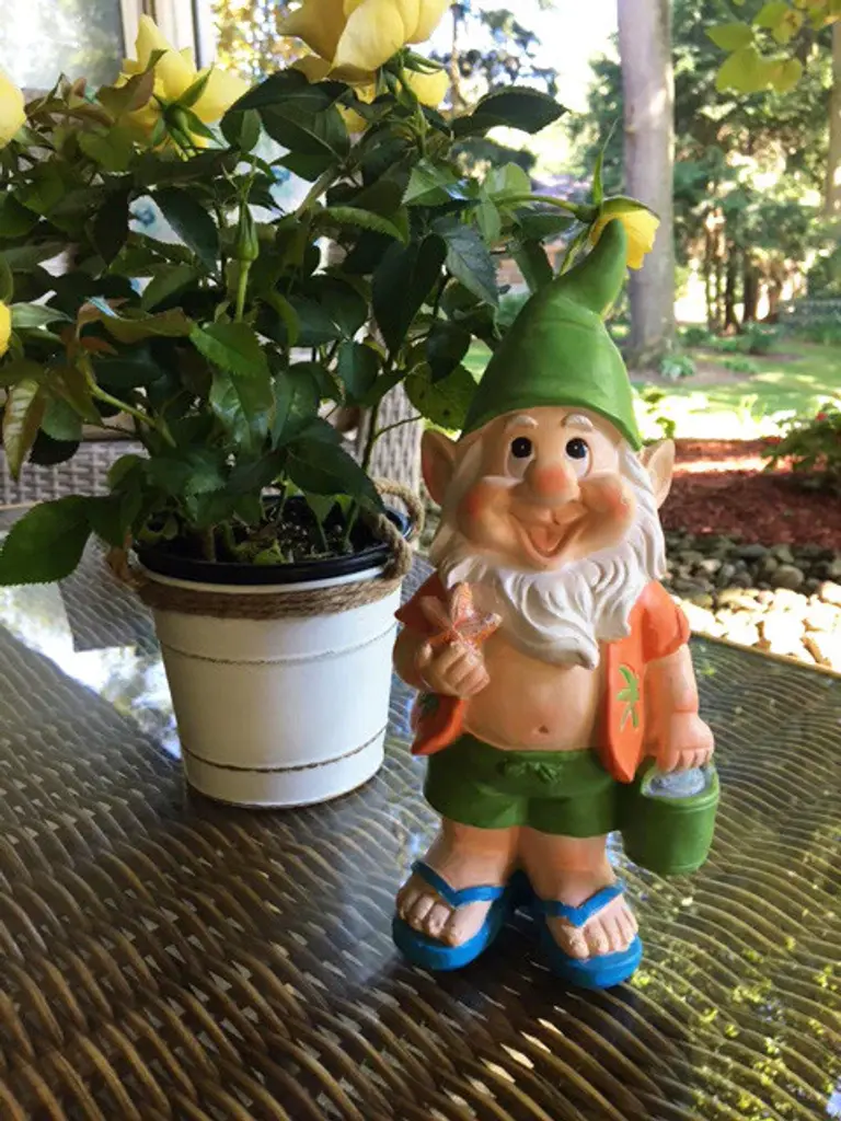 Nothing beats a day at the beach, especially when you find a treasure! This happy gnome is beaming with excitement as he holds his precious little starfish up for all to admire. Small in stature but big in personality, this wonderful gnome figurine will look great placed in a garden or set out on the patio. Made of long lasting resin and beautifully hand painted, this 8" Beach Gnome with Starfish is sure to provide many seasons of pleasure.