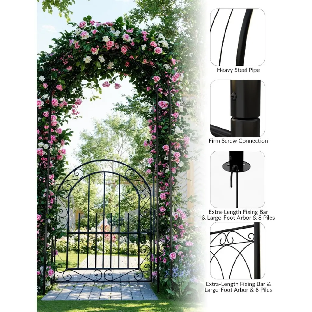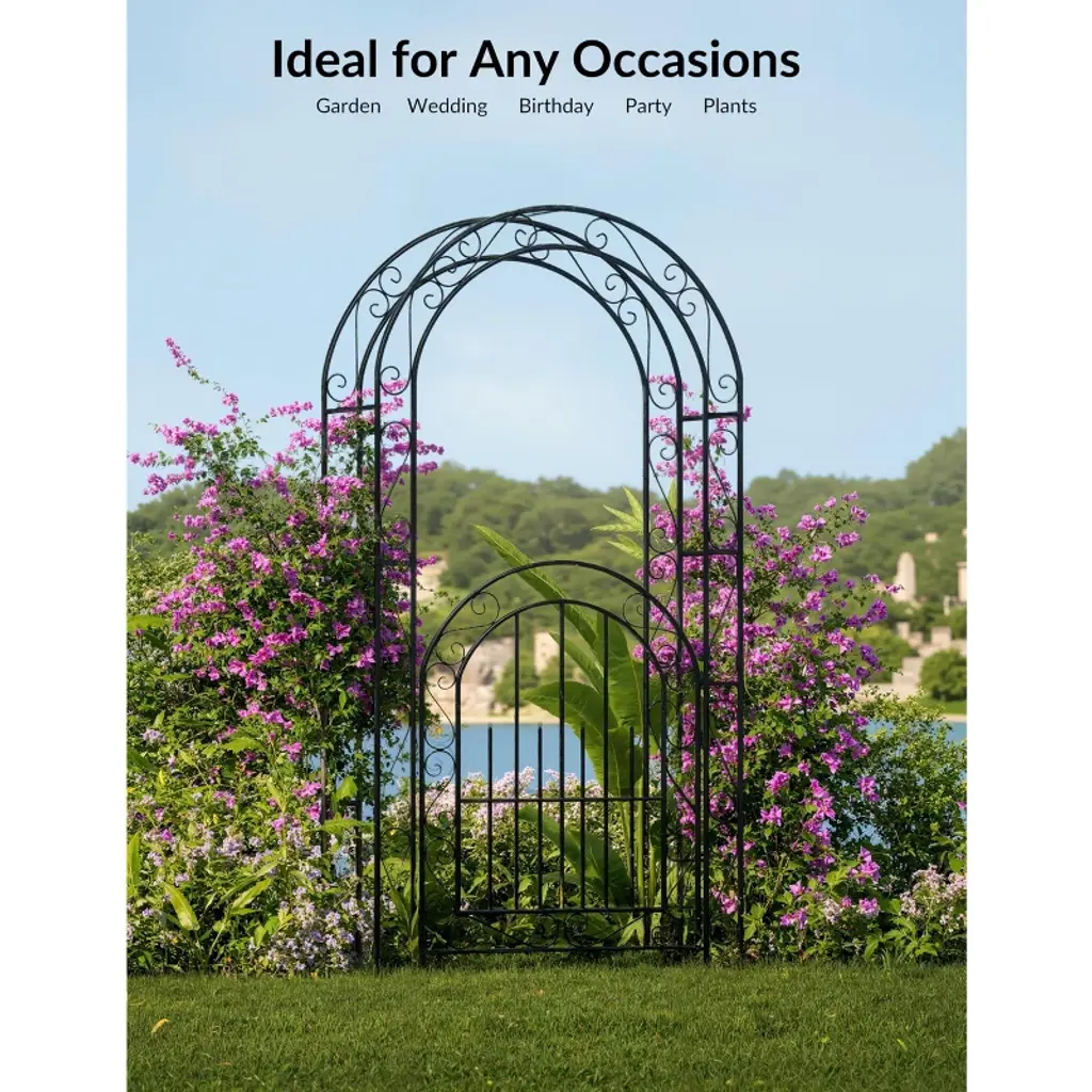 8 FT Garden Archway with Single Gate, Rust-Resistant Metal Arbor for Weddings, Parties & Outdoor Decor, Sturdy Trellis for Roses, Vines & Climbing Plants, Easy Assembly with Ground Stakes