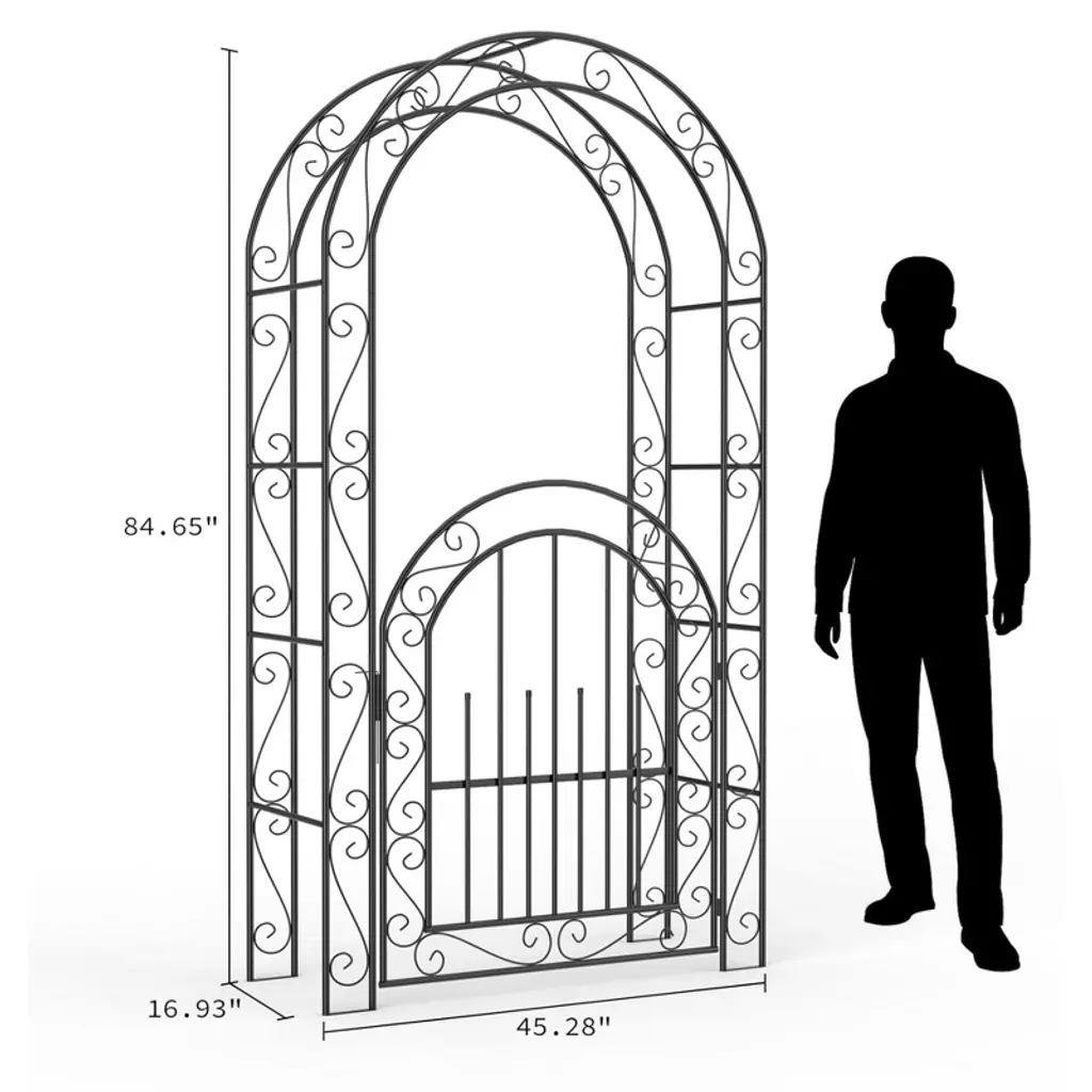 8 Ft Garden Archway With Single Gate, Rust-resistant Metal Arbor For Weddings, Parties & Outdoor Decor