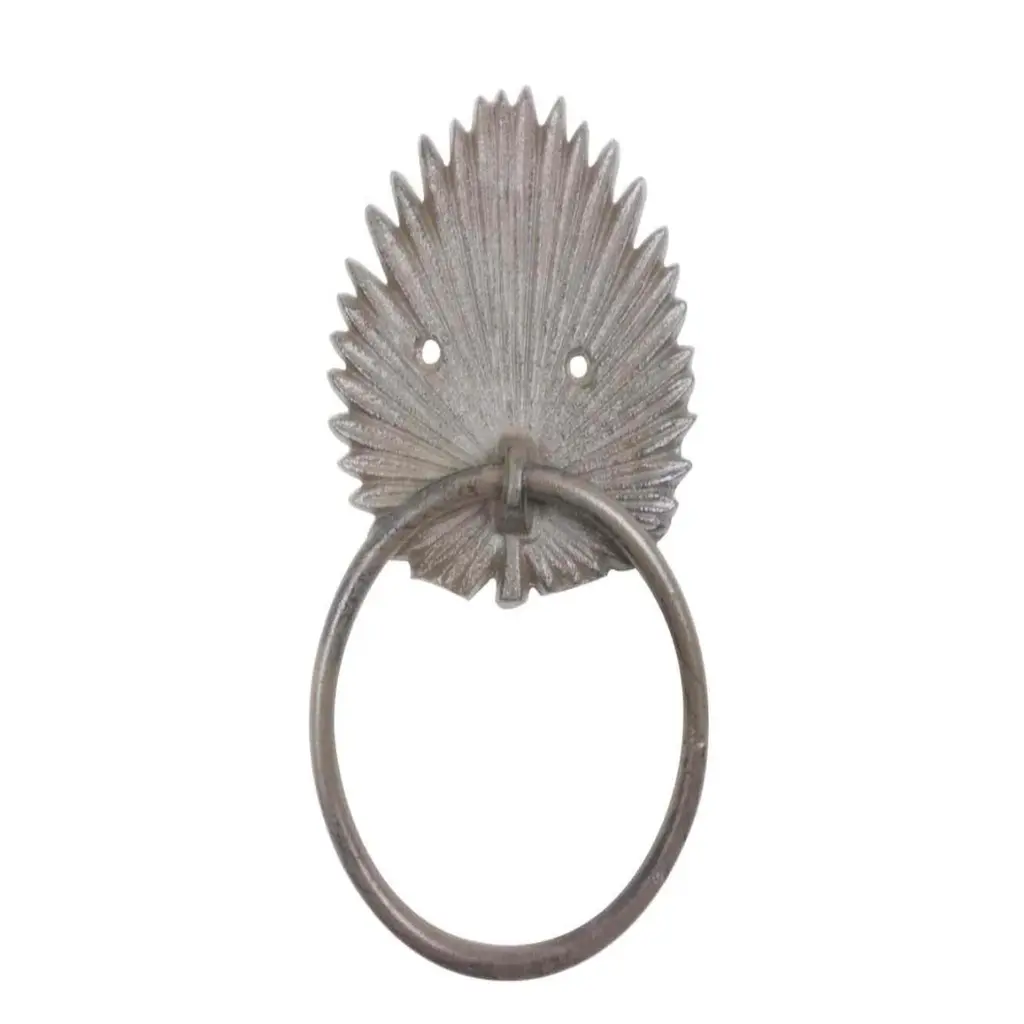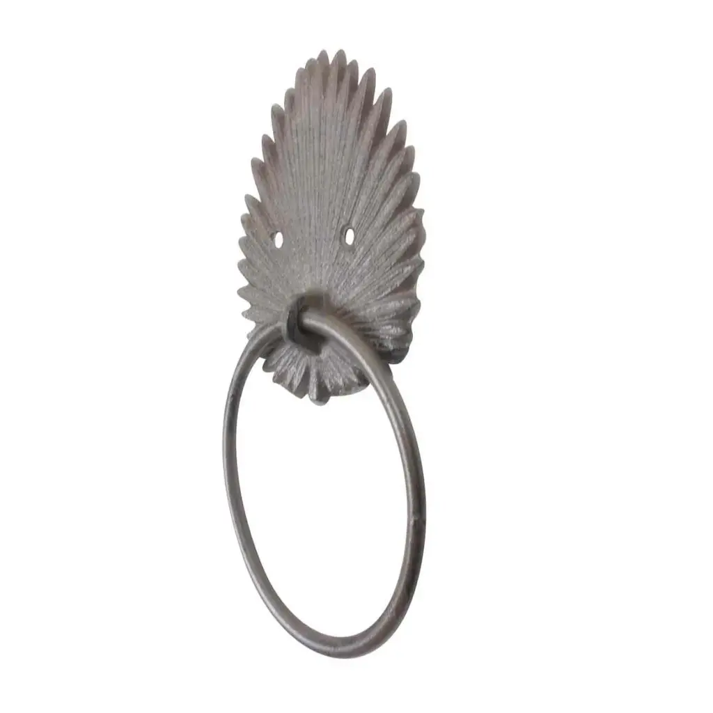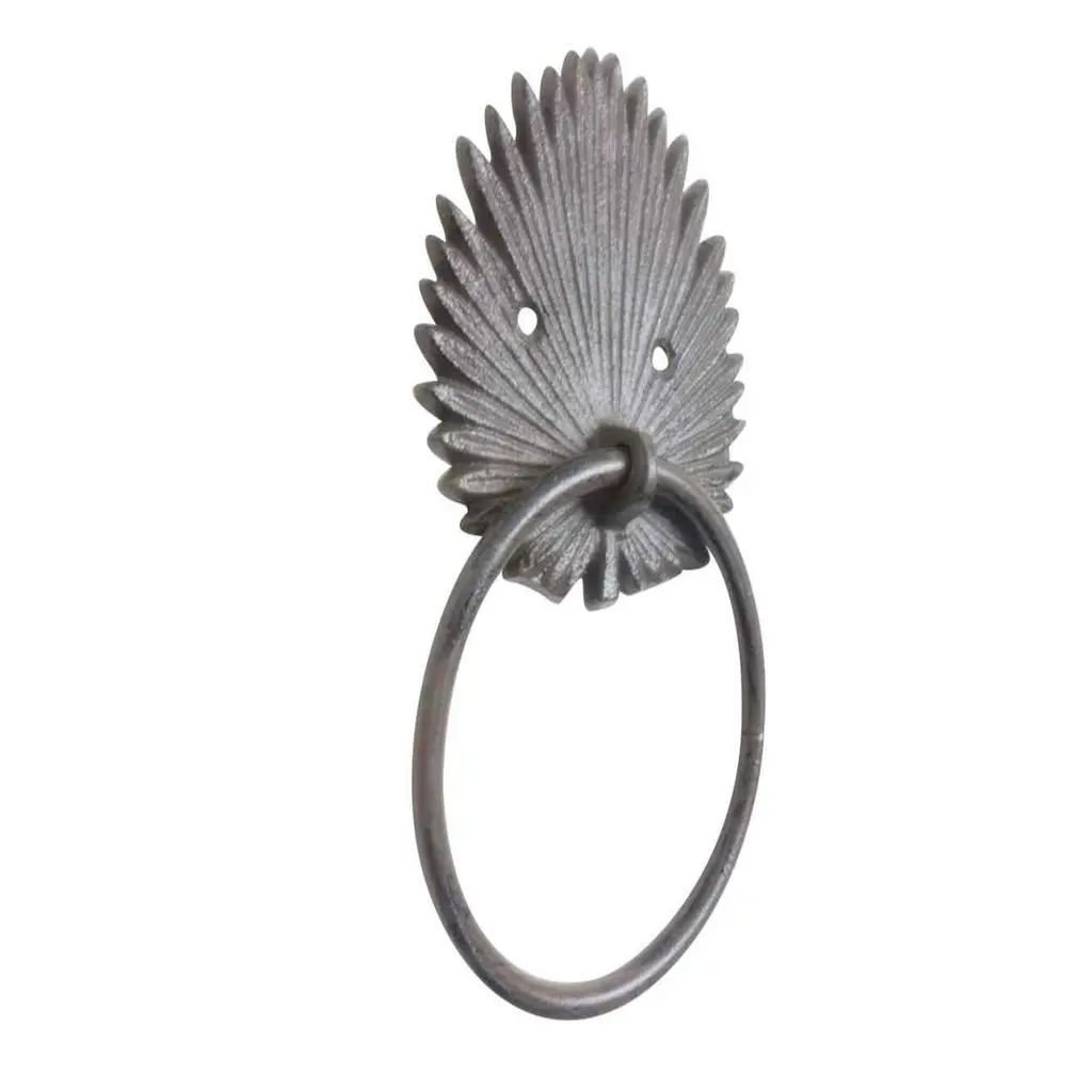 8" Grey Cast Iron Decorative Metal Palm Frond Towel Holder Ideal For Hanging Towels - 4.5" L X 1" W X 8" H - Single