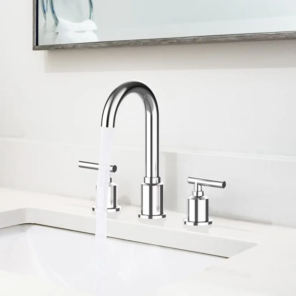 8 Inch Faucet, Modern 3-hole Sink Faucet With Stainless Steel Pop-up Drain, 360° Swivel Spout, Elegant Chrome Finish