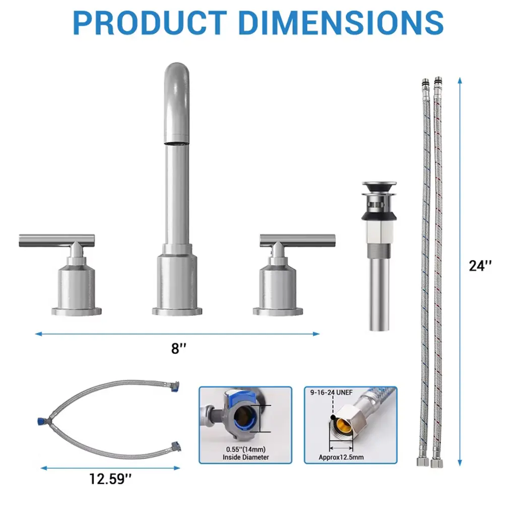 8 Inch Faucet, Modern 3-hole Sink Faucet With Stainless Steel Pop-up Drain, 360° Swivel Spout, Elegant Chrome Finish