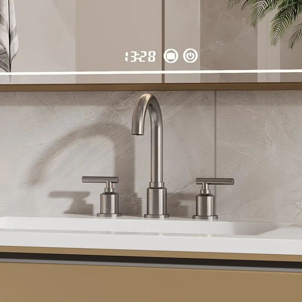 Product Description:This contemporary faucet complements various bathroom styles, from guest baths to suites. The included pop-up drain features sleek functionality 5, while the elegant chrome finish adds a touch of sophistication to any vanity space, making it perfect for residential and commercial applications FeatureBrushed Gold construction for corrosion resistance scratches and rust in daily useHigh quality ceramic valve core, advanced water control system, ceramic disc cartridge valve for leak-free performance,360 degree rotating spoutHigh-arc spout for enough sink space and clearance, Washing is more convenientComes with quick connector hose for easy installation, is easy to install by yourself without a plumberMeets CEC, cUPC and NSF certification requirements in pursuit of a safe environment, Safe and HarmlessProduct information:Product Dimensions: 14.96"D x 12.6"W x 3.94"HItem Weight: 3.8 poundsSpecial Features: Pop Up DrainFinish Type: Brushed