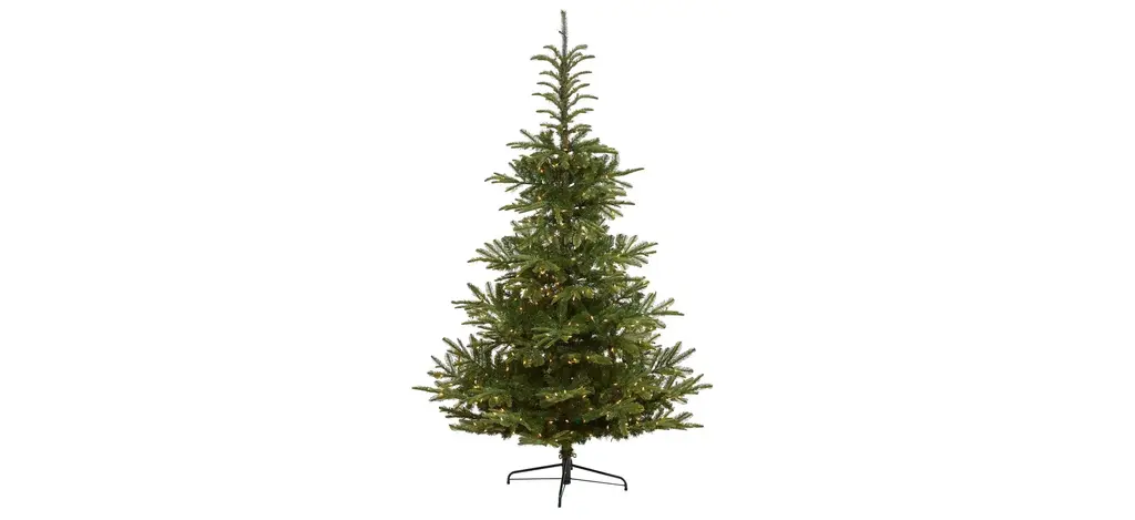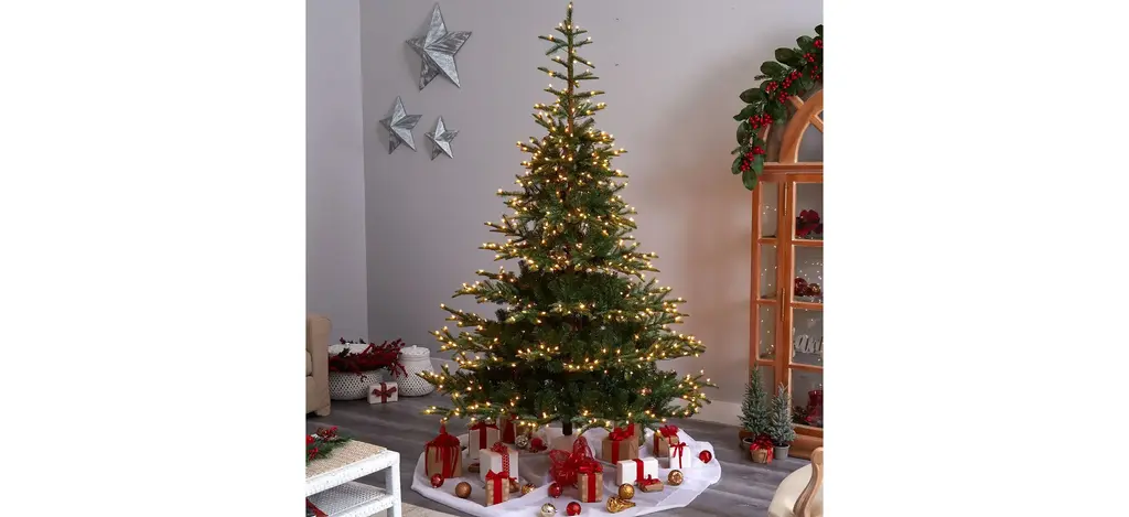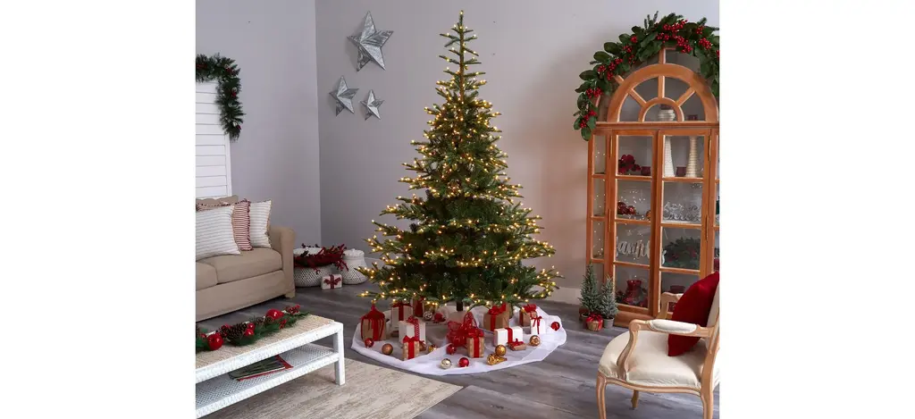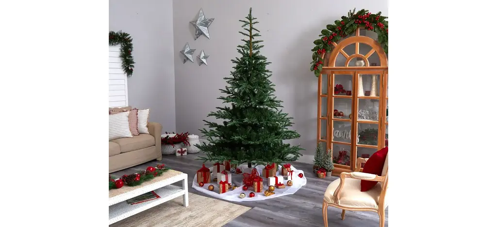 Bring the outdoors in, literally, with the 8' Layered Washington Spruce Artificial Tree rustic, natural looking, Layered Washington Spruce Artificial Christmas Tree. Sparse by design with spacious gaps that allow you to showcase your favorite ornaments.
