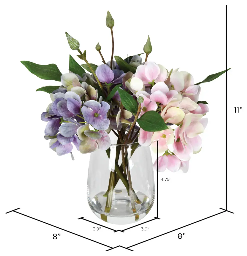 8" Light Pnk/Purp Hydrangea In Glass PotVickerman 8" Artificial Light Pink and Purple Hydrangea.Light Color: UnlitStand: Glass PotColor: Light PinkProduct Dimensions (W x D x h): 8 x 8 x 11