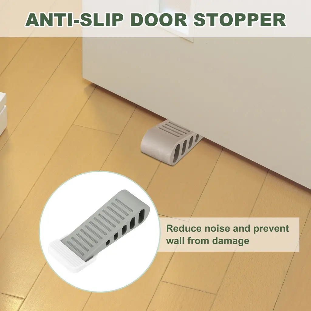 Description :Anti-Slip Design - The door stopper has a double-sided anti-slip function, with a horizontal stripe design on the surface, which increases the friction with the door and can easily fix the position of the door. Stackable design and hollow design make it suitable for a wider range of gaps, and evenly distributed force, raises its grip and is not easy to move.Material - The door stoppers for the bottom of the door are made of TPR, soft and non-slip, they will not scratch the surface of the floor or door; It has elasticity and can adapt to larger gaps, and can also be used on floors of various materials (wooden boards, ceramic tiles, and so on), and the trapezoidal design also provides cushioning force when closing the door.Easy to Use and Store - Place the door stopper on the floor at a suitable distance, which is easy to replace and does not affect cleaning. Comes with a holder that you can stick to the door or wall for storage the door stopper when not in use; In addition to being used as a buffer and fixing when opening the door, the door stopper can also be used when closing the door to stop it from opening from the outside.Wide Applications - These door stops can be applied to various occasions, such as offices, homes, shops, hotels, etc; These door stops ensure that doors do not accidentally slip and close, so you don't have to worry about the door suddenly closing in winds, protecting the door and walls.Specifications:Material: TPRColor: BlackTotal Size: 125 mm x 40 mm x 30 mm / 4.92 Inch x 1.57 Inch x 1.18 Inch (L*W*H)Fit for distances with door gaps: More than 30 mm / 1.18 InchPackage Content:8 Pcs x Door Stoppers with Holder