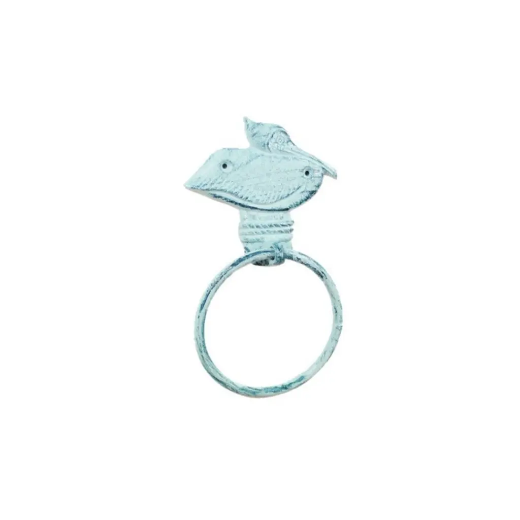 Specification:Description:Add a touch of coastal charm to your bathroom or kitchen with this Rustic Dark Blue Whitewashed Cast Iron Pelican on Post Towel Holder. Measuring 5" L x 1" W x 8" H, this functional yet decorative towel holder features a beautifully crafted pelican design, perfect for beach-inspired spaces. Made from durable cast iron, it provides a sturdy and stylish way to hang towels. Its easy-to-mount design allows for effortless installation, though screws are not included. Whether you're looking to add a unique accent or showcase your love for coastal living, this towel holder is the perfect choice for your home.