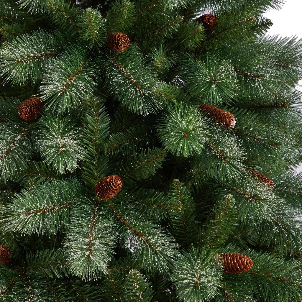 8' Snowed French Pine Xmas Tree W/1159 Tips And Pine Cones - 50”d X 50”w X 96”h - Green