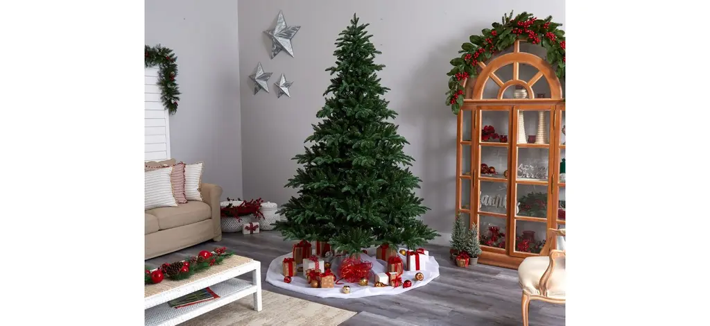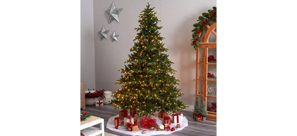 Evoke a traditional Christmas scene with the 8' Pre-Lit South Carolina Spruce Artificial Tree . Incredibly lifelike with a full-figured silhouette - that mimics the texture and foliage of real evergreens.