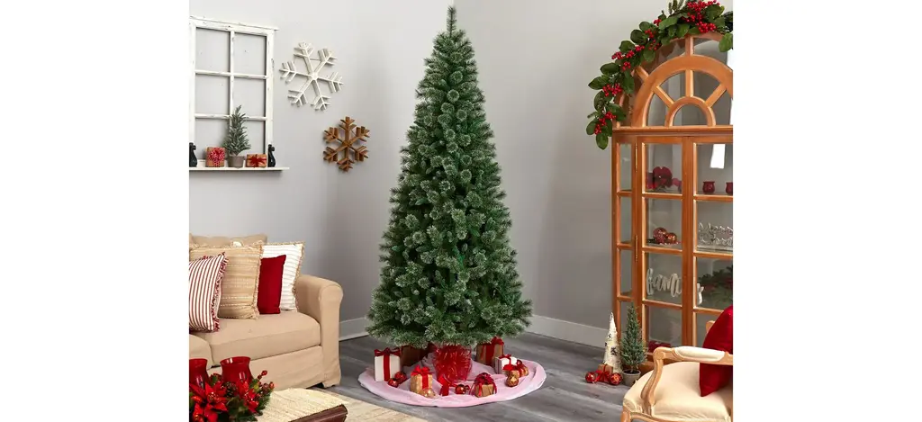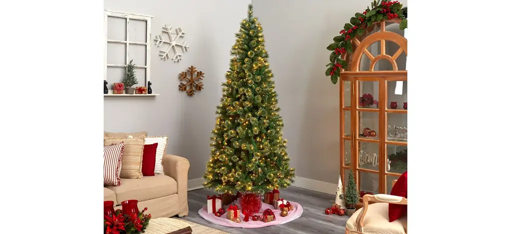 8' Wisconsin Slim Snow Tip Artificial Christmas Tree With Clear Led Lights And Bendable Branches