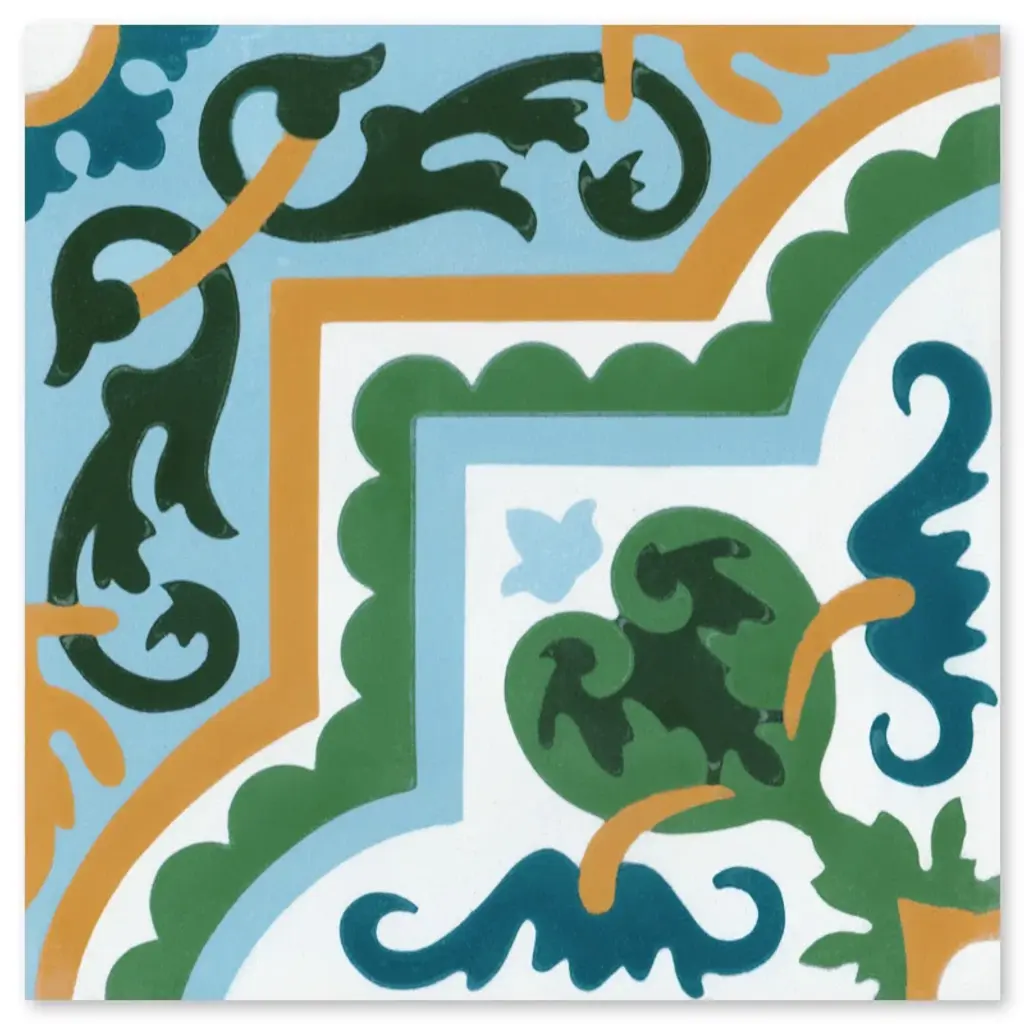 Villa Lagoon Tile's cement tiles are hand-crafted by master artisans using a process over 150 years old. The low-energy non-fired decorative tiles are produced from cement, mineral pigments, ground marble dust, and sand, then pressed and cured to produce one of the most beautiful surfaces on the market. The hand-made nature of cement tile means that no two tiles are alike, with color and pattern variations that give it a beauty similar to natural stone and hardwood surfaces. With proper sealant and care, cement tile makes a great durable surface for residential or commercial floors, walls, and creative uses indoors and outdoors. Note: Cement tiles need to be sealed once or twice, before grouting and general usage.