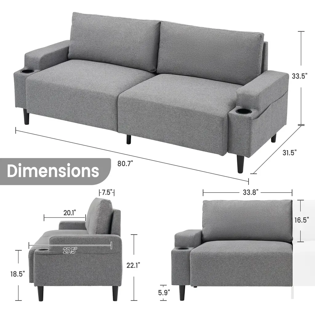 Spacious and comfortable: Our sofa will become the most popular leisure spot in your home. It is 80.7 inches wide, enough for 2 to 3 people to use. The thick spring foam pad and breathable fabric create a soft and supportive base and backrest, allowing you to rest and have fun all day long. Durable and sturdy: You don't have to worry about its durability! Our entire small sofa is made of wear-resistant fabric, with a sturdy wooden frame and high elasticity springs that can easily support a weight of 660 pounds. Solid wood legs can protect your floor from wear and scratches. Therefore, it will last for a long time in your living space. Practical features and upgraded design: This sofa is designed with practicality in mind, featuring a built-in cup holder and convenient side pockets for easy storage and quick access to items. Especially suitable for watching TV, hosting parties, and other occasions to enhance user convenience. Flexible and multifunctional: Why not consider adding a stylish small sofa in the bedroom, living room, apartment, or attic? Mini sofas can be placed in comfortable corners and provide temporary sleeping space for visitors. Whether you're relaxing after a long day at work, sipping a steaming cup of coffee, or chatting and resting with friends, our couple seats welcome you. Easy to install: This sofa measures 80.7 inches wide x 31.5 inches deep x 33.5 inches high. There is a detailed installation manual and a complete toolkit in the box, which anyone can easily install in 20 minutes. If you have any questions, please feel free to contact us and we are happy to assist you.