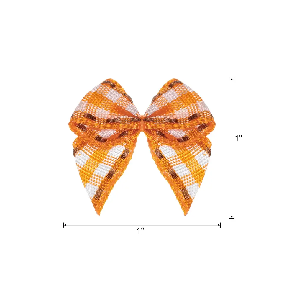 80pcs Mini Gingham Ribbon Bow 1" Checkered Ribbon Bows - Light Green White