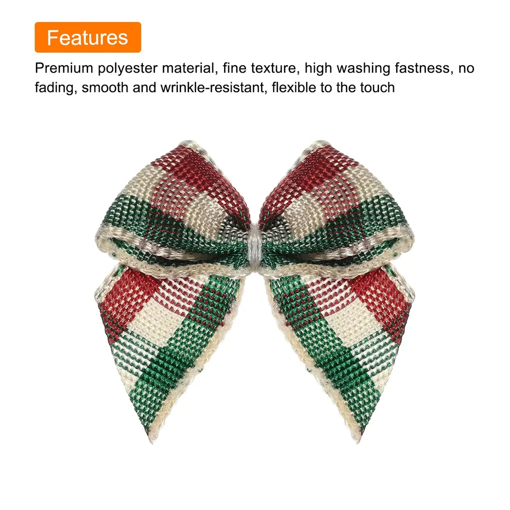 What is this?These ribbon bows are mostly used in the hemming and decoration of leather goods, bags, sleeping bags, tents, and clothing. Because polyester ribbon is soft, they are mostly used for the hemming of softer fabrics.What will I get?The Mini Ribbon Bow, we provide here, is in size of:Material: PolyesterColor: Dark Red Green CreamDimension: 1 x 1 inch (W*H)In the package of: 80 x Mini Ribbon BowsAre there any advantages of the product?Polyester material, fine texture, high washing fastness, no fading, smooth and wrinkle-resistant, flexible to the touch.The product is bright in color, fashionable and new in design, and can be used on many occasions. It is suitable for hair accessories, clothing, Christmas gifts, baking decorations, gift box packaging, hotel decorations, wedding decorations, flower packaging, birthday arrangements, etc.How to use it?1. Choose the color of the Mini Ribbon Bow that matches your project or gift wrapping paper. 2. Use twist ties (not included here) or or glue to secure the mini ribbon bows to desired surfaces such as gift boxes, cards, or crafts. 3. Adjust the position of the bow if necessary to get the desired look.What should I notice?Manual measurement, please allow +/-3mm errors in size.Please note that there may be a slight color difference between the picture and the actual product, and the color is subject to the actual product received.