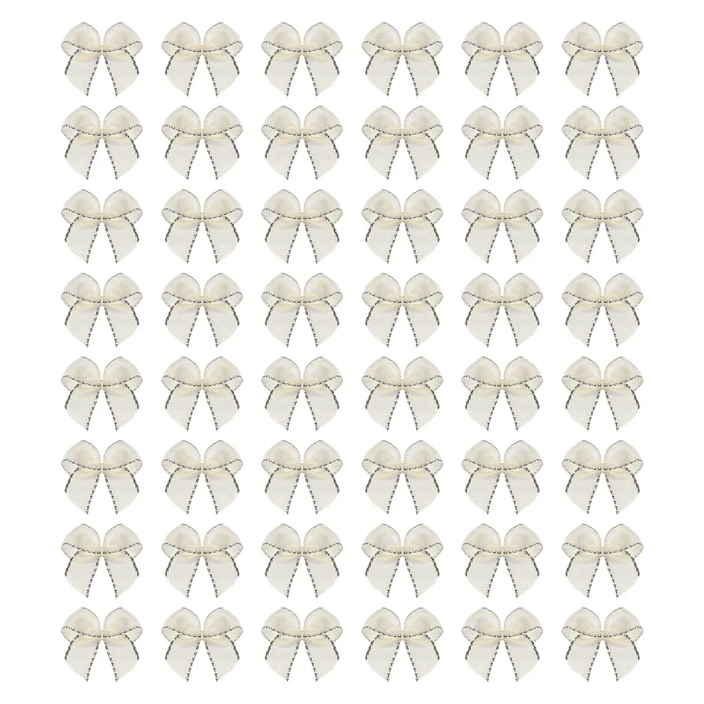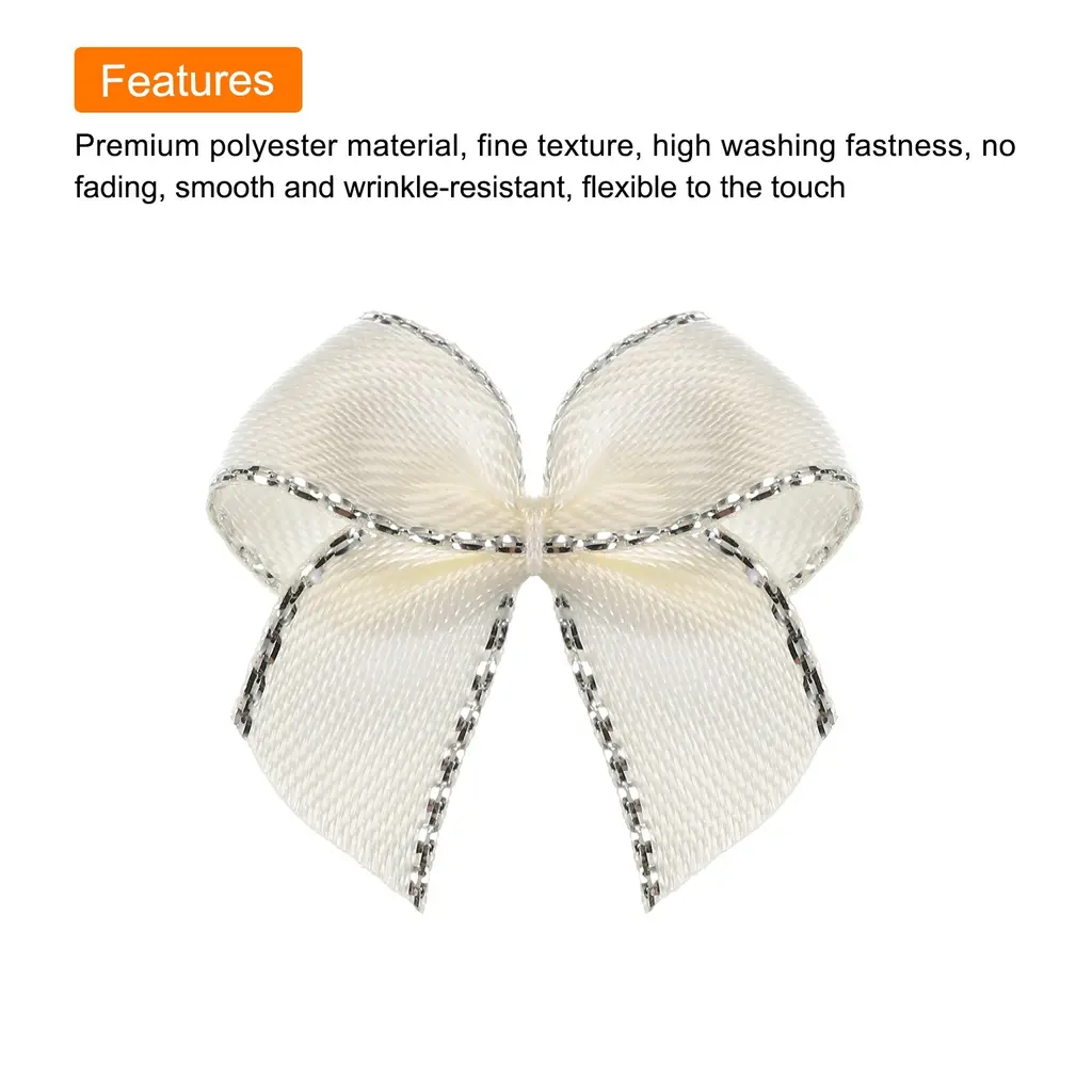 What is this?These ribbon bows are mostly used in the hemming and decoration of leather goods, bags, sleeping bags, tents, and clothing. Because polyester ribbon is soft, they are mostly used for the hemming of softer fabrics.What will I get?The Mini Ribbon Bow, we provide here, is in size of:Material: PolyesterColor: CreamDimension: 1 x 1 inch (W*H)In the package of: 80 x Mini Ribbon BowsAre there any advantages of the product?Polyester material, fine texture, high washing fastness, no fading, smooth and wrinkle-resistant, flexible to the touch.The product is bright in color, fashionable and new in design, and can be used on many occasions. It is suitable for hair accessories, clothing, Christmas gifts, baking decorations, gift box packaging, hotel decorations, wedding decorations, flower packaging, birthday arrangements, etc.How to use it?1. Choose the color of the Mini Ribbon Bow that matches your project or gift wrapping paper. 2. Use twist ties (not included here) or or glue to secure the mini ribbon bows to desired surfaces such as gift boxes, cards, or crafts. 3. Adjust the position of the bow if necessary to get the desired look.What should I notice?Manual measurement, please allow +/-3mm errors in size.Please note that there may be a slight color difference between the picture and the actual product, and the color is subject to the actual product received.