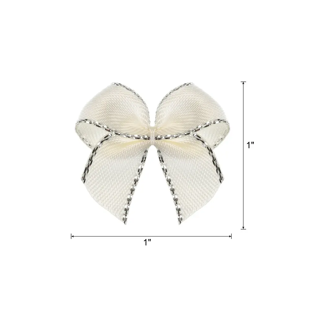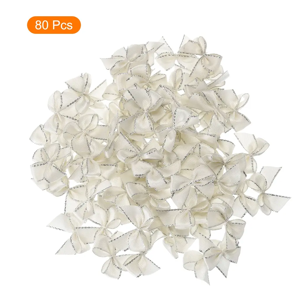 What is this?These ribbon bows are mostly used in the hemming and decoration of leather goods, bags, sleeping bags, tents, and clothing. Because polyester ribbon is soft, they are mostly used for the hemming of softer fabrics.What will I get?The Mini Ribbon Bow, we provide here, is in size of:Material: PolyesterColor: CreamDimension: 1 x 1 inch (W*H)In the package of: 80 x Mini Ribbon BowsAre there any advantages of the product?Polyester material, fine texture, high washing fastness, no fading, smooth and wrinkle-resistant, flexible to the touch.The product is bright in color, fashionable and new in design, and can be used on many occasions. It is suitable for hair accessories, clothing, Christmas gifts, baking decorations, gift box packaging, hotel decorations, wedding decorations, flower packaging, birthday arrangements, etc.How to use it?1. Choose the color of the Mini Ribbon Bow that matches your project or gift wrapping paper. 2. Use twist ties (not included here) or or glue to secure the mini ribbon bows to desired surfaces such as gift boxes, cards, or crafts. 3. Adjust the position of the bow if necessary to get the desired look.What should I notice?Manual measurement, please allow +/-3mm errors in size.Please note that there may be a slight color difference between the picture and the actual product, and the color is subject to the actual product received.