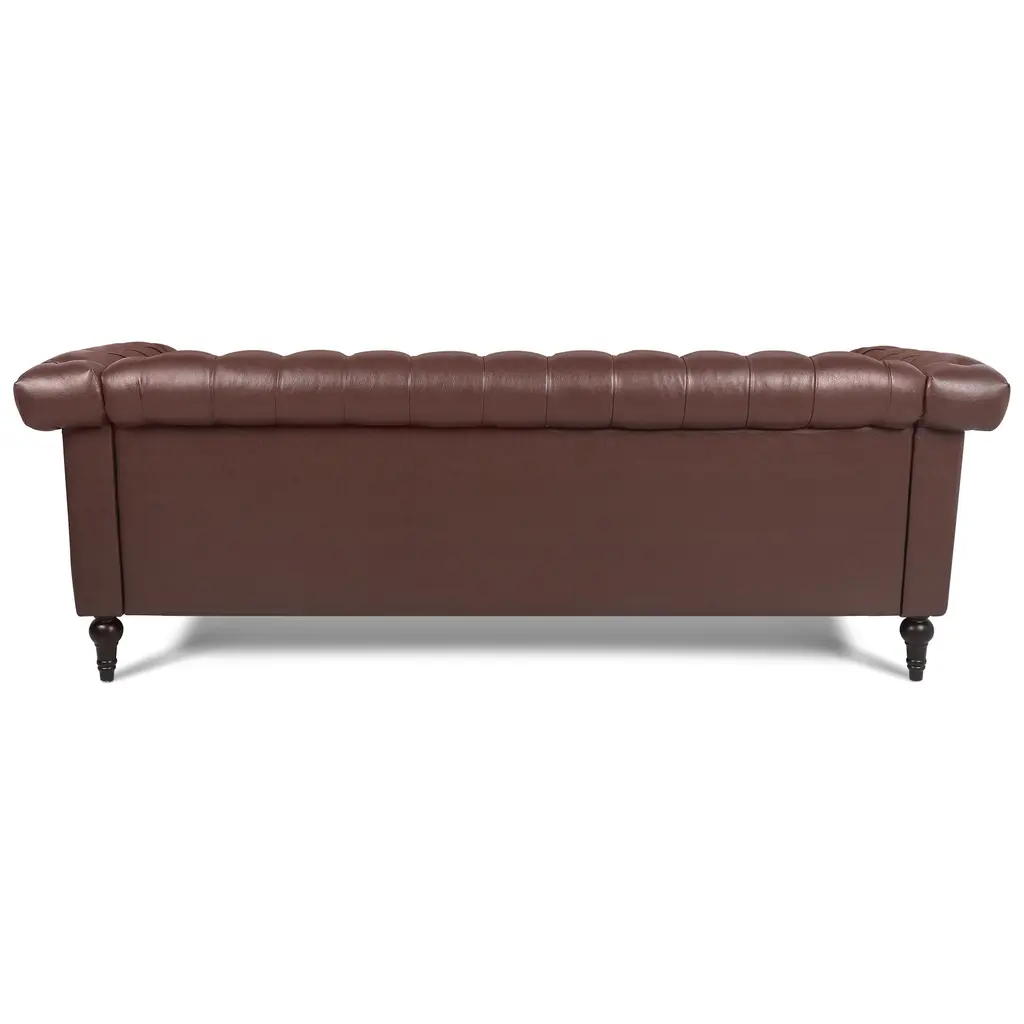 83.66 Inch Width Traditional Square Arm Removable Cushion 3 Seater Sofa - Dark Brown