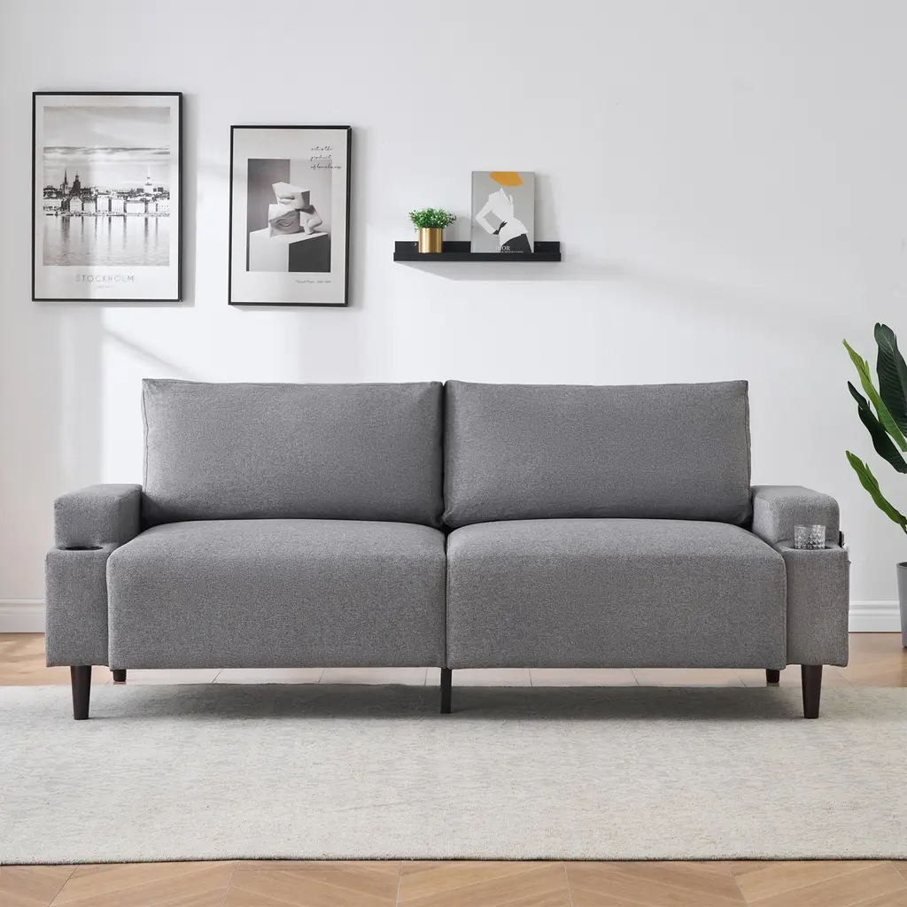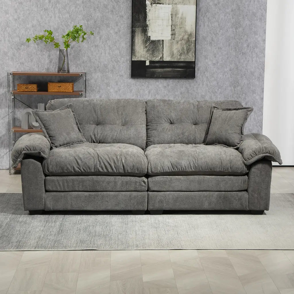Chenille Fabric: Luxuriously soft and plush, our Chenille fabric wraps you in cozy comfort, making every seat a delightfully indulgent experience. Filling: Premium PP Cotton fills the pillows and armrests, complementing the fabric with a tender hug, enhancing every rest into a soothing experience. Dual-Layer Seat Padding: Our seats feature a combination of memory foam for tailored support and pocket springs for dynamic comfort, creating a harmonious blend of relaxation and stability. Sturdy Construction: The manufactural wood frame and Plastic Feet provide a solid, stylish base, supporting up to 600 pounds, blending durability with contemporary design. Versatile Placement: This loveseat, perfect for living rooms, bedrooms, offices, or apartments, seamlessly blends comfort and style, enhancing any space it's placed in. Shipping & Care Tips: Your sofa, packed in two boxes for safe delivery, may arrive separately. Vacuum-compressed cushions need 48 hours to fully expand upon opening.