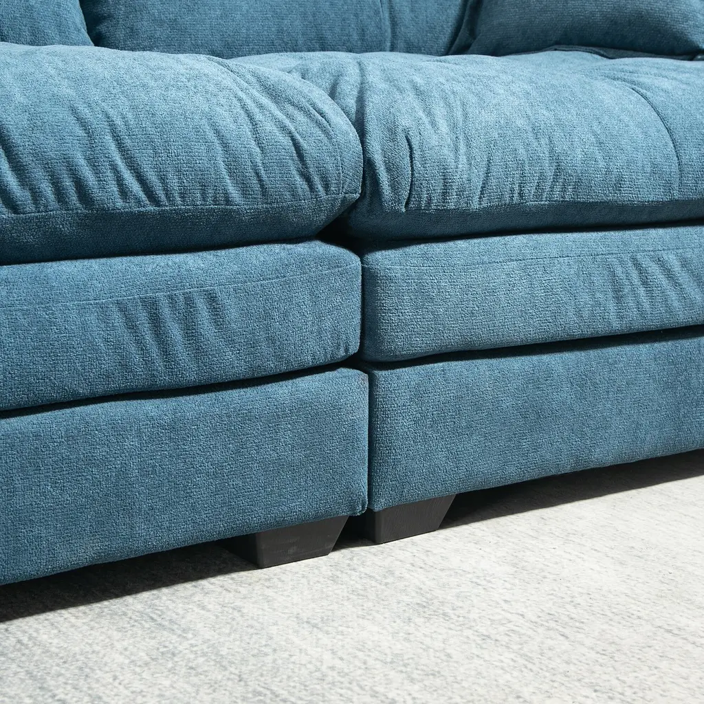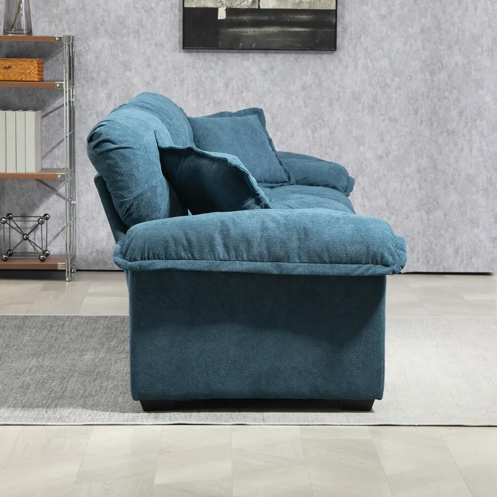 84-Inch Chenille Sofa Loveseat - Upholstered With Memory Foam And 2 Throw Pillows - Blue