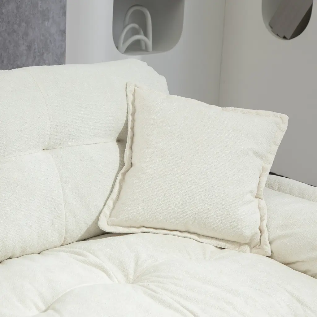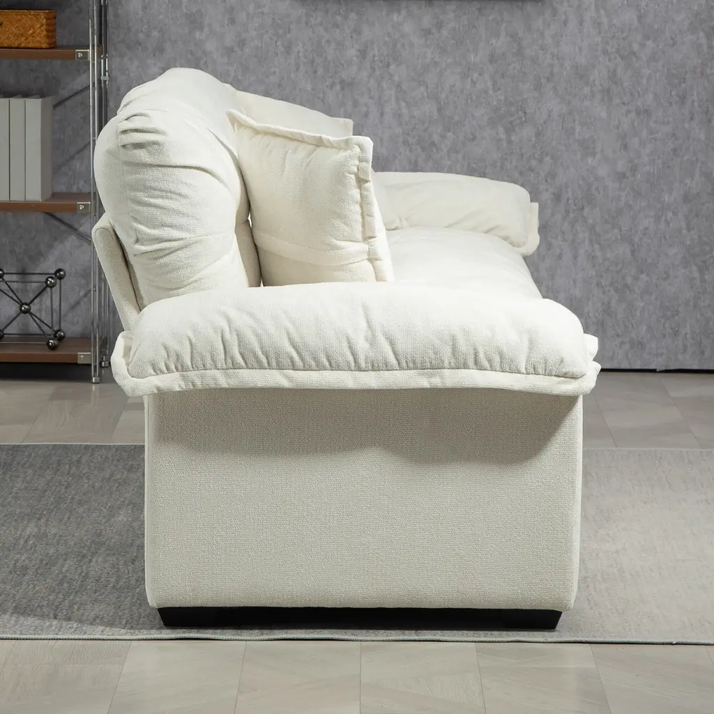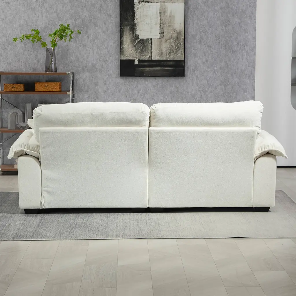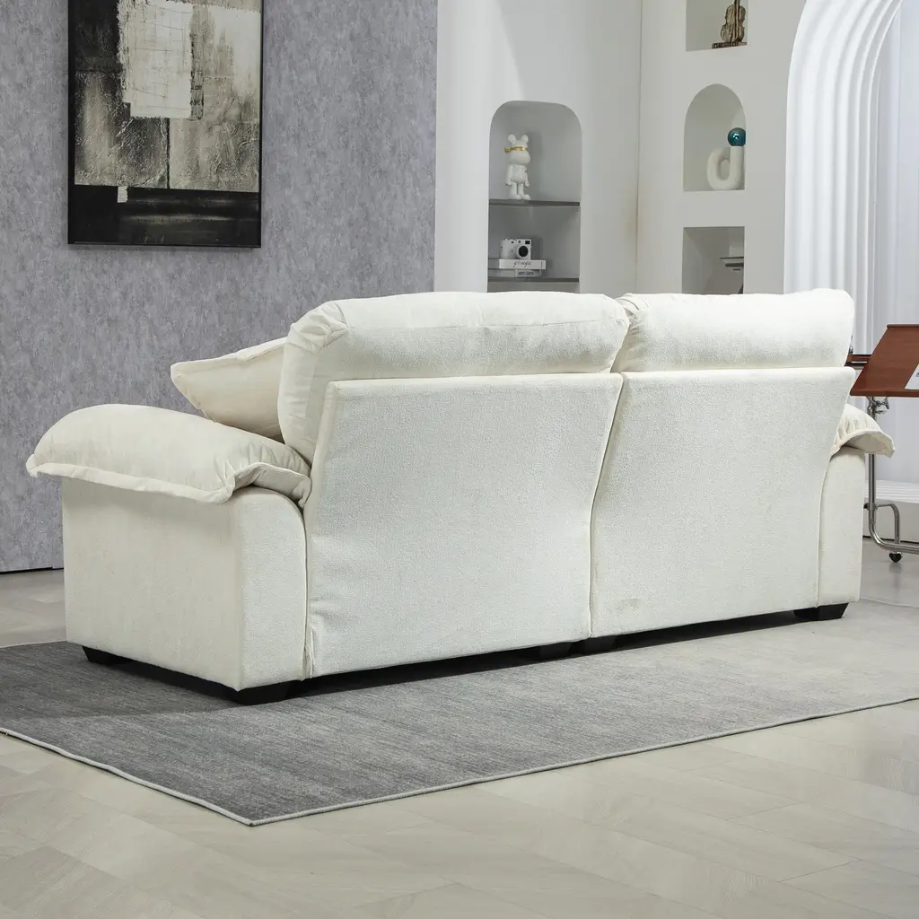 84-Inch Chenille Sofa Loveseat - Upholstered With Memory Foam And 2 Throw Pillows - White