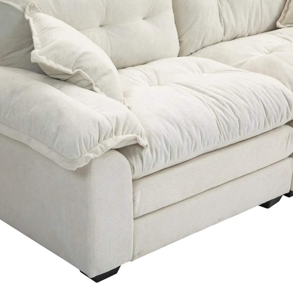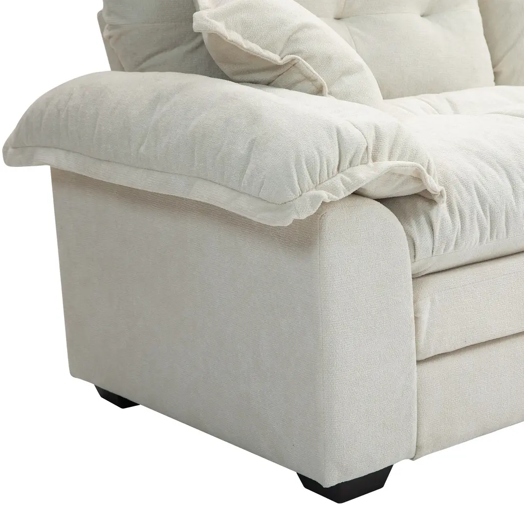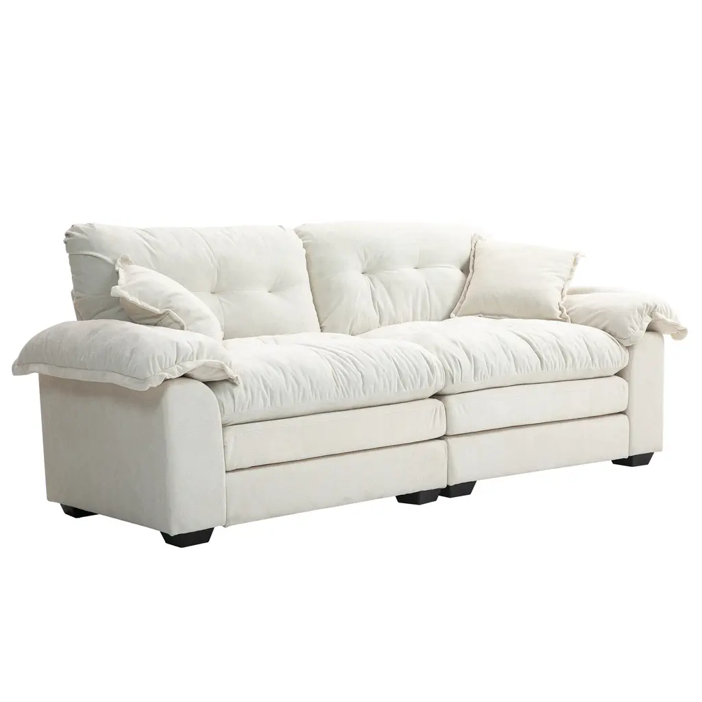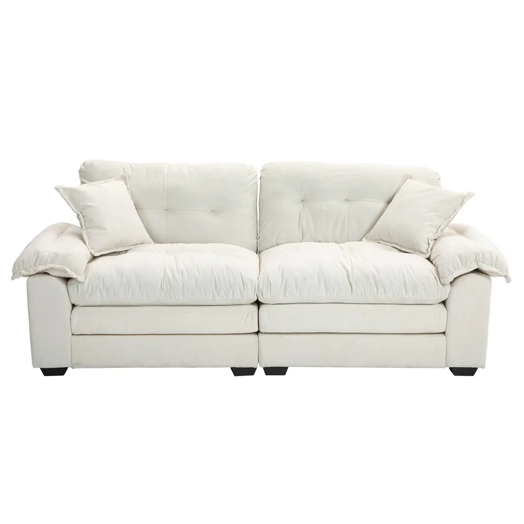 84-Inch Chenille Sofa Loveseat - Upholstered With Memory Foam And 2 Throw Pillows - White