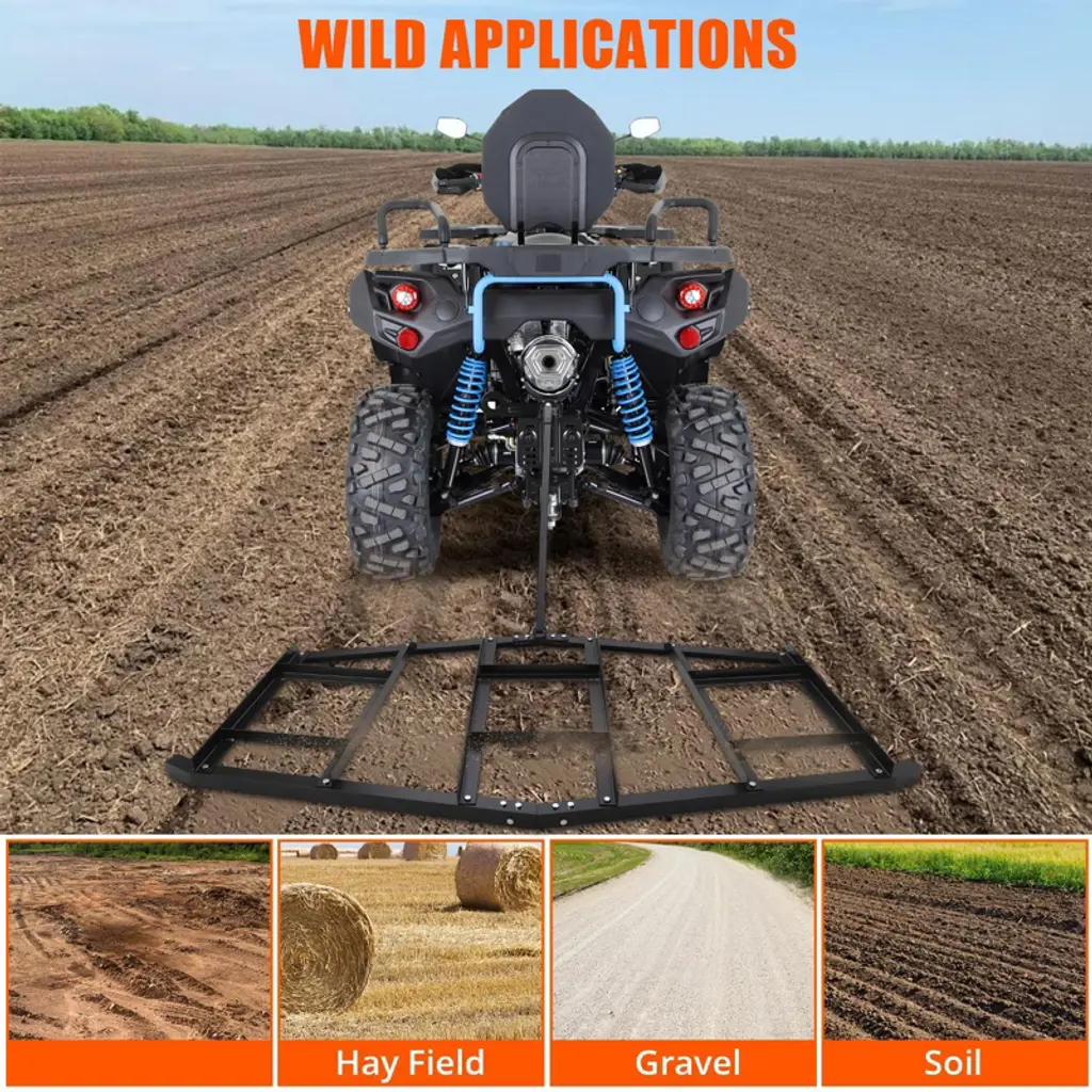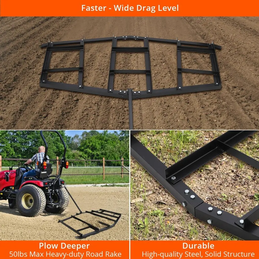 84" Wide Drag Harrow, Steel Driveway Drag With Pin Hitch, Tow Behind Landscape Leveling Rake 50lbs Max Heavy-duty Lawn Leveling Tools