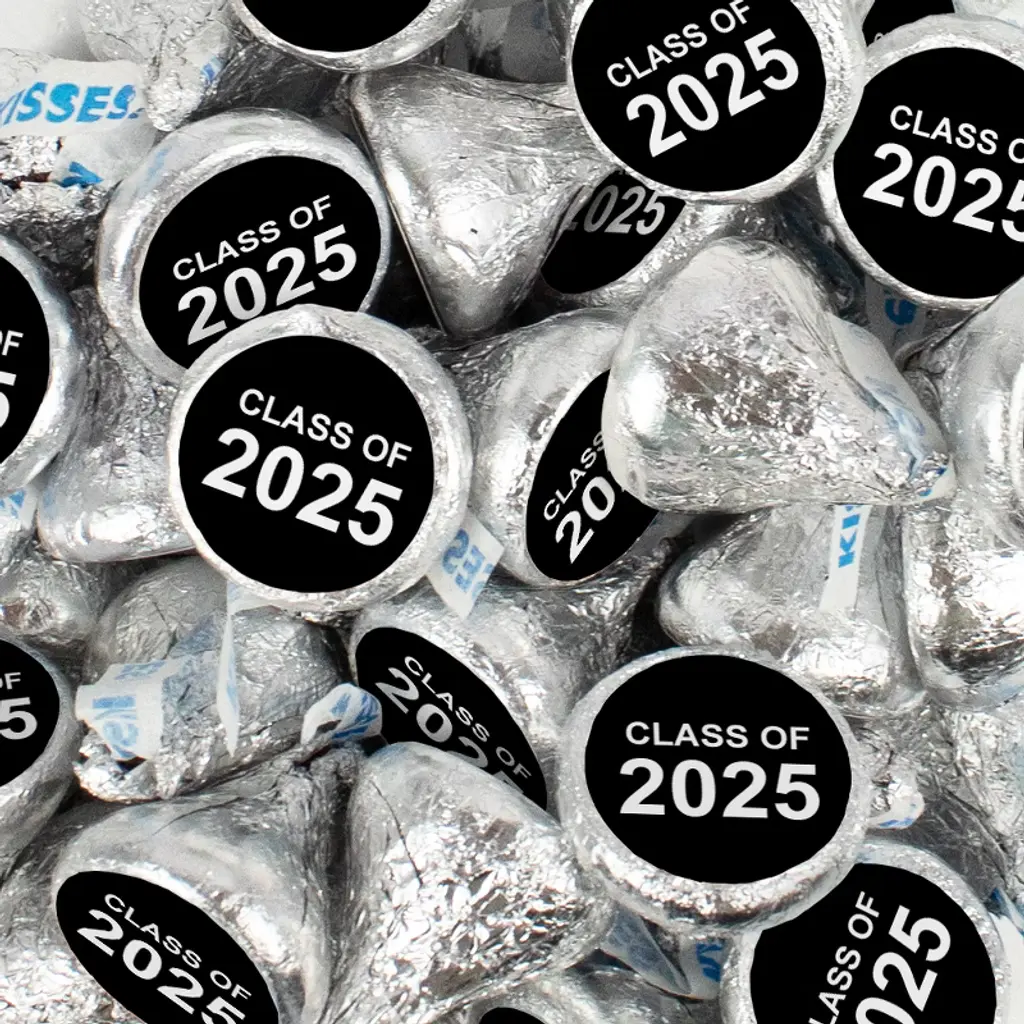 Celebrate his or her Graduation with delicious individually wrapped Hershey's Kisses candies completely assembled with an exclusive Class of 2025 stickers. This favor includes blue Class of 2025 stickers on silver foiled milk chocolate kisses candy. Shop Graduation themed candy in all school colors at Just Candy. Each 13.6oz bag includes 90 foiled chocolate kisses. Candy orders ship with cold pack packaging as needed.
