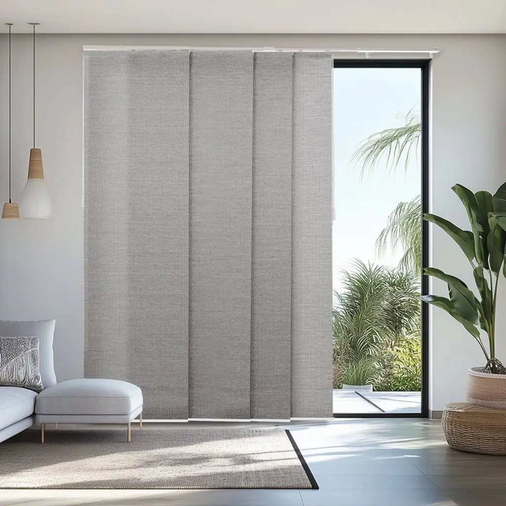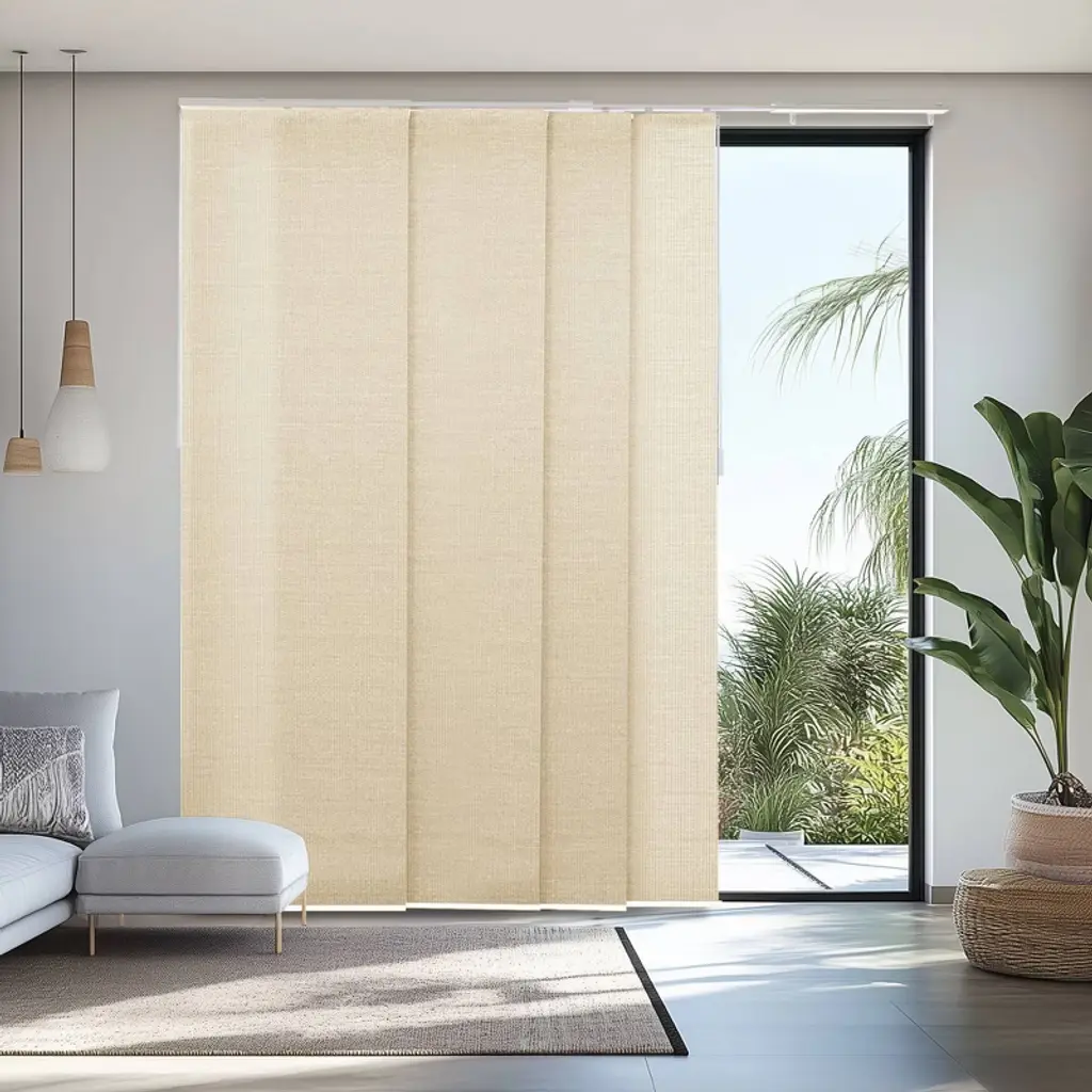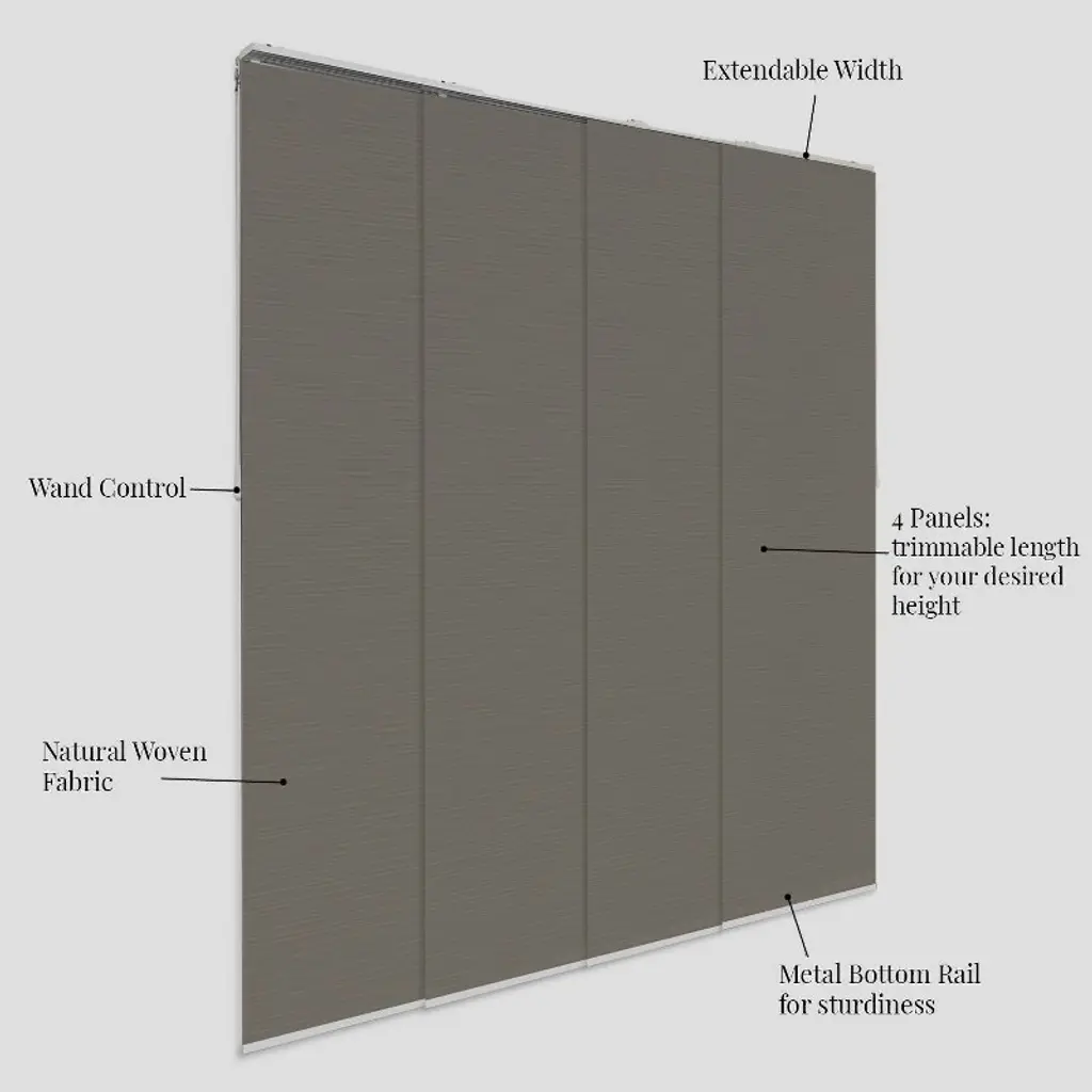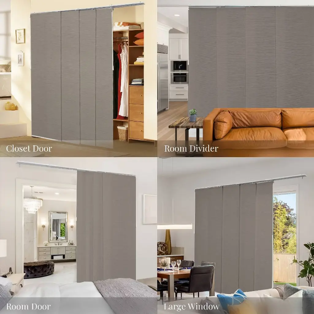 The Ballroom Adjustable Sliding Panels 4-Rail Track with Privacy Textured Fabric offers a stylish and functional solution for those seeking both privacy and light control. The textured fabric provides excellent privacy while gently filtering light, creating a cozy and comfortable atmosphere in any room. The adjustable 4-rail track, which spans from 46" to 86" wide, offers flexibility to fit a variety of window sizes, while the trimmable panels allow for a custom fit to your space. The panels glide effortlessly along the track using two wands, making it easy to open them to the left or right. With its sleek, modern design, this system enhances the aesthetic of your home and is ideal for large windows, sliding doors, or open spaces. Additionally, the cordless design ensures safety, making these blinds an excellent choice for homes with children or pets. The Ballroom Adjustable Sliding Panels combine privacy, convenience, and contemporary style for a functional, family-friendly window treatment.