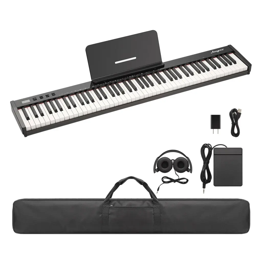 88 Keys Piano Keyboard,headphones,pedal,handbag,bluetooth, Usb Midi - With Bracket