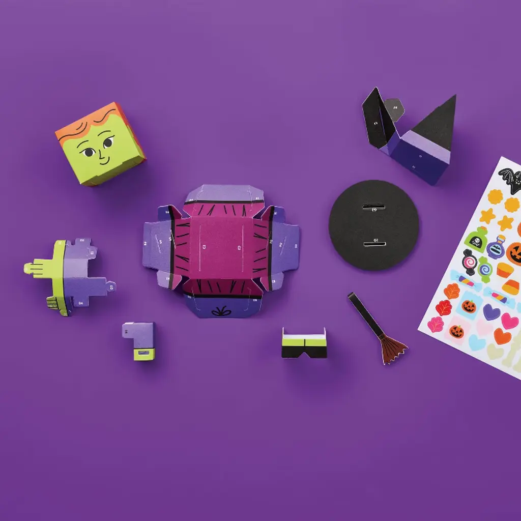 Keep the Halloween excitement flowing with this Create-Your-Own 3D Halloween Figures Kit from Mondo Llama™. This kit includes pre-printed paper sheets that can be easily folded to create eight cute Halloween-themed characters, including a green witch, ghost, monster and more. The kids can then use the included stickers to customize the characters, and once they're done, you can place them on a tabletop or above the mantel to showcase their creativity.Mondo Llama™: Find your creativity in the making.