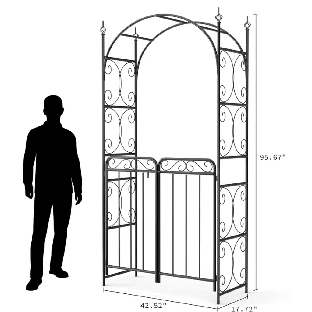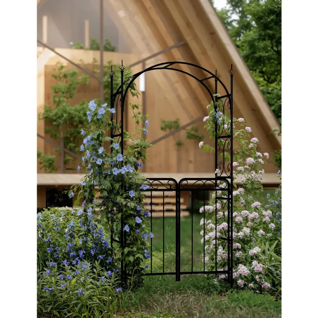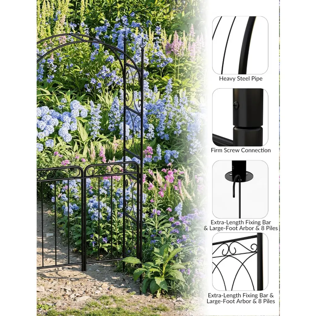 8FT Black Garden Arch with Gate ¨C Heavy-Duty Metal Arbor for Wedding Decor, Sturdy Steel Archway for Climbing Roses & Vines, Perfect for Patio, Backyard & Outdoor Events