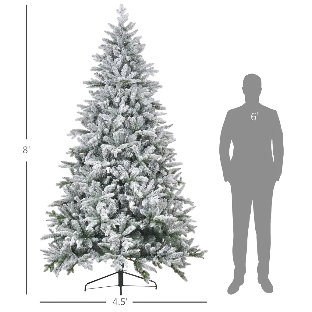 8Ft Realistic Snow Flocked Xmas Tree With 2003 Tips, Quick Assembly, Hinged Design & Metal Stand - Green